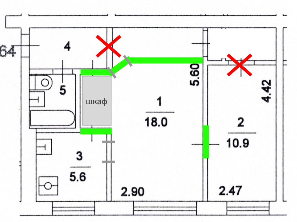 Это понятно, просто обычно стену кладовки смещают и делают кабинет вне зависимости есть второе окно или нет. А тут прямо такая плотная упаковка выходит, не видел еще такого. У самого такая квартира была, но я кладовку снес и сделал вход через ее дверь, а дверь посреди стены застроил чтобы комнаты разделить, еще и коридор сделал