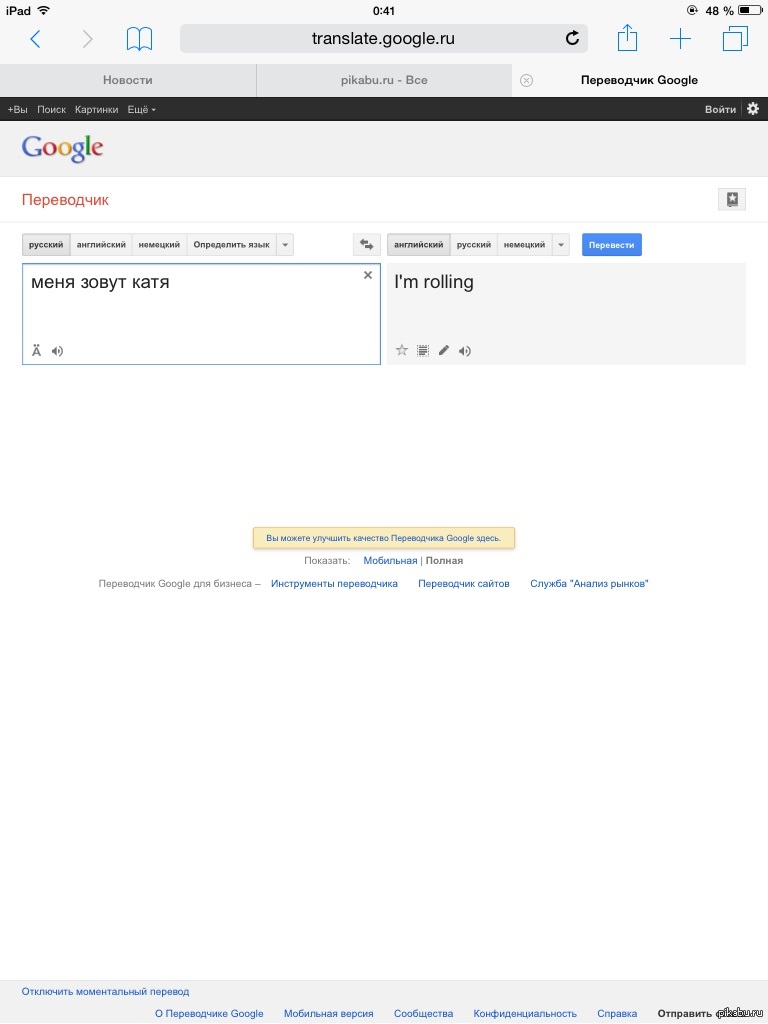 8 Igrohim 10 лет назад В тему про переводчик Гугл продолжает удивлять [моё] Google Перевод Екатерина Ролики