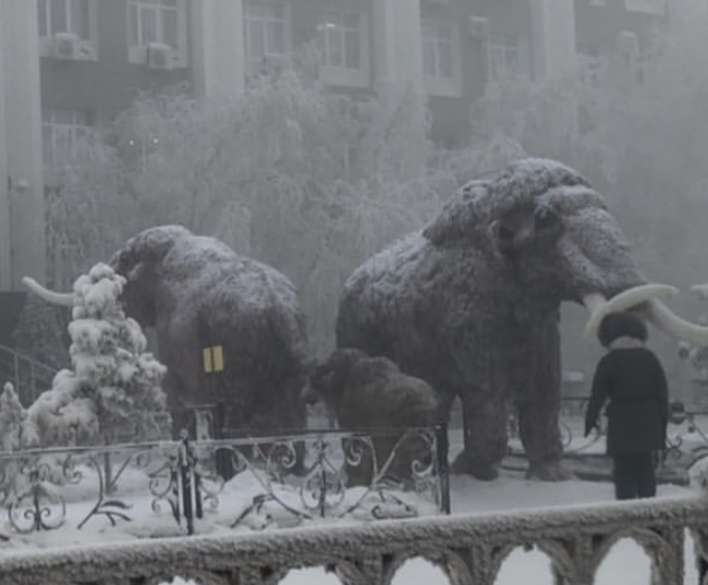 Сегодня перед зданием Окружной администрации состоялось открытие традиционных снежных скульптур. В нынешнем году в сердце столицы вновь вернулось семейство мамонтов. Фигуры в натуральную величину мастерски изваяли скульптор-анималист Олег Саввинов и его сын Аял.