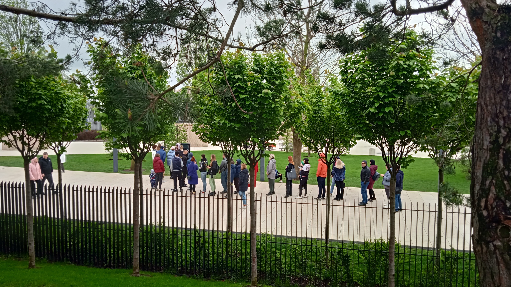 Новая часть парка открылась вот недавно. Одновременно 200 человек. Вход осуществляется через коды на входе. Вот это очередь вчера утром. Успел там побывать в первый день открытия когда была запись через сайт.