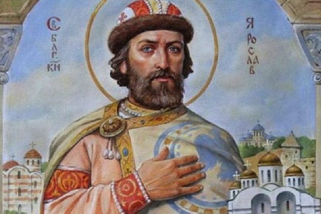 Храм возведён при Ярославе Владимировиче, а на фреске Ярослав Всеволодович - как-то так)
