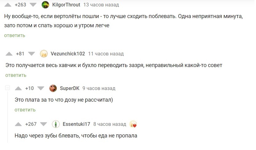 gipermaster В эфире рубрика "Советы бывалых" 3 года назад #comment_253556245 Алкоголики Алкоголь Вертолет Комментарии на Пикабу Повтор Ещё 0