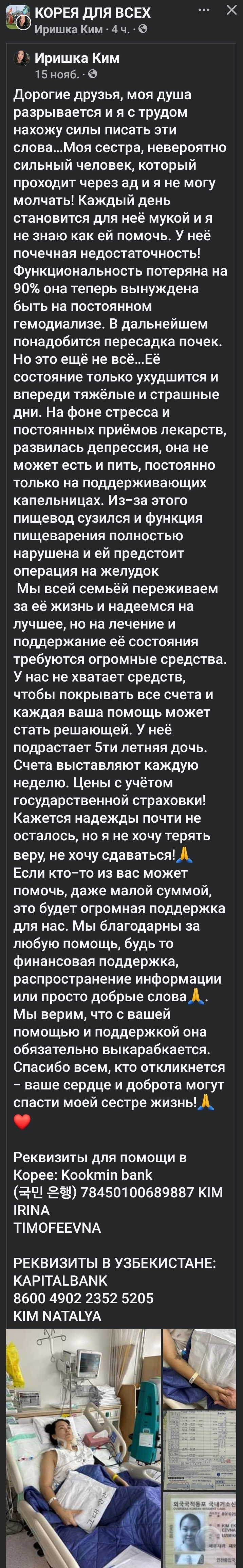 Вот так русскоязычные приезжают в Корею заработать денег, а потом попадают в больницу и просят помощи через Фейсбук.
