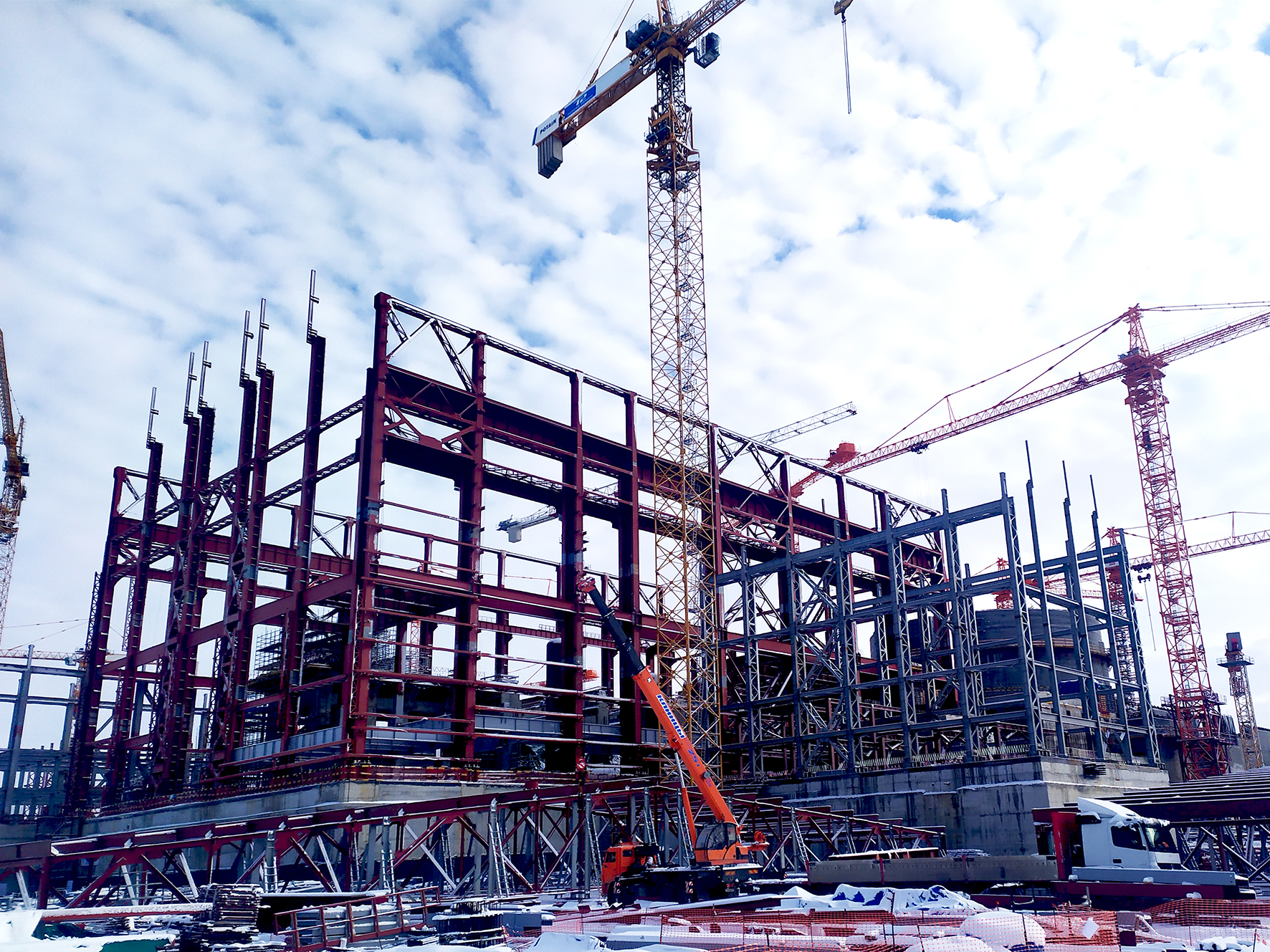 В сутки строители армируют от 3,5 до 6 тонн. Всего в верхнюю фундаментную плиту будет уложено около 400 тонн арматуры. Армирование плиты планируется завершить в апреле, после чего приступят к ее бетонированию.