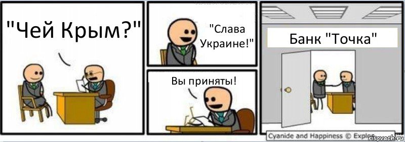 Осталось узнать, разделяет ли нынешнее руководство банка "Открытие" подобный подход в кадровых вопросах? Или банку требуется дополнительная санация, чтобы с руководством банка тоже провели собеседование, задали ряд вопросов и внимательно посмотрели на реакцию, чтобы докопаться до сути банка, дабы понять, наш этот банк или нет, так как это очень важно в совместной работе. Ответы типа "Наш банк вне политики" не принимаются. Ну и опросить/допросить руководство "Точки "тоже бы не помешало. Для продуктивной совместной работы, конечно же.