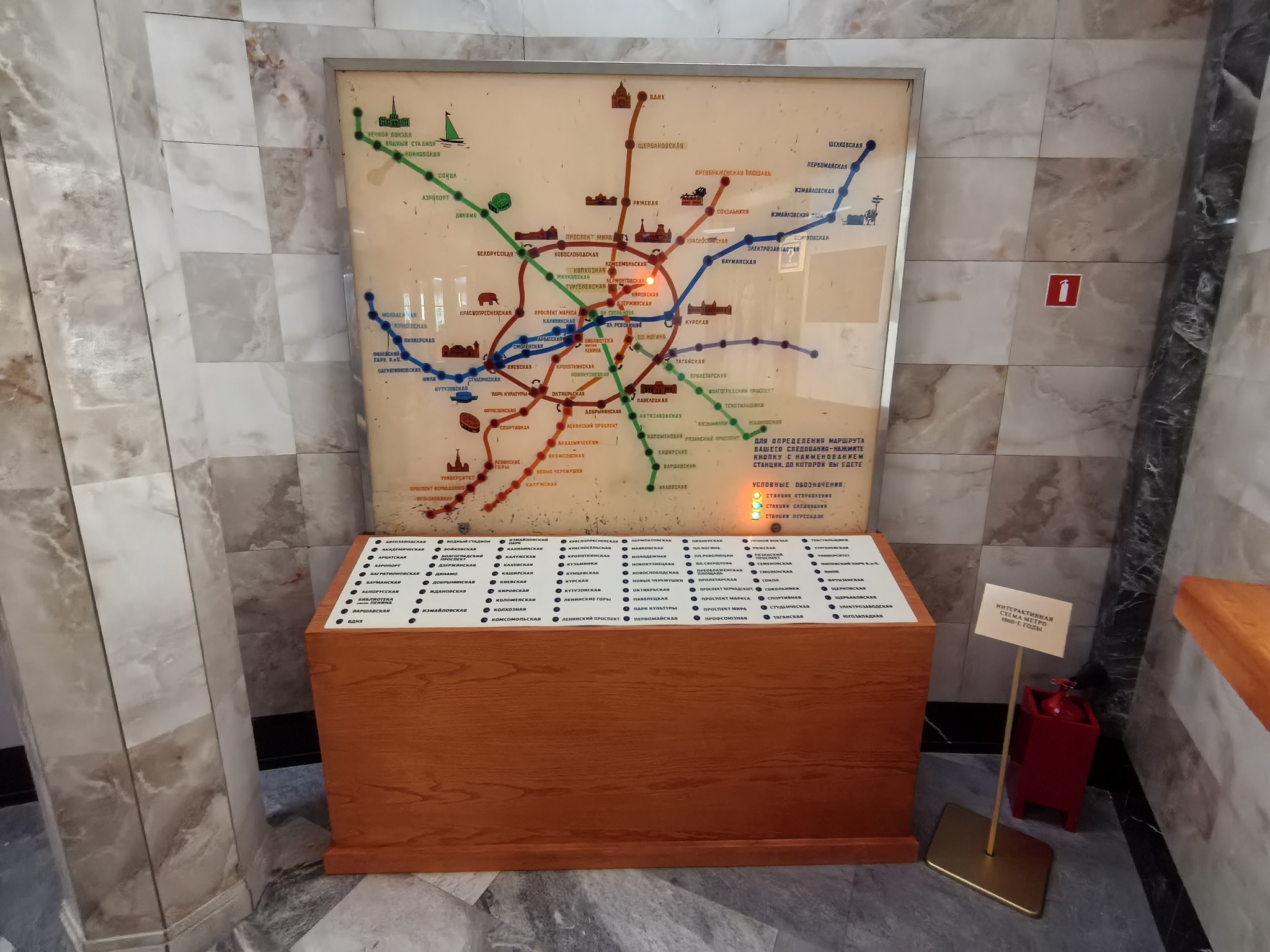 Ещё одна диковинка. Прообраз интерактивных карт метро! Нажимаешь и держишь кнопку нужной тебе конечной станции и маршрут подсвечивается!
