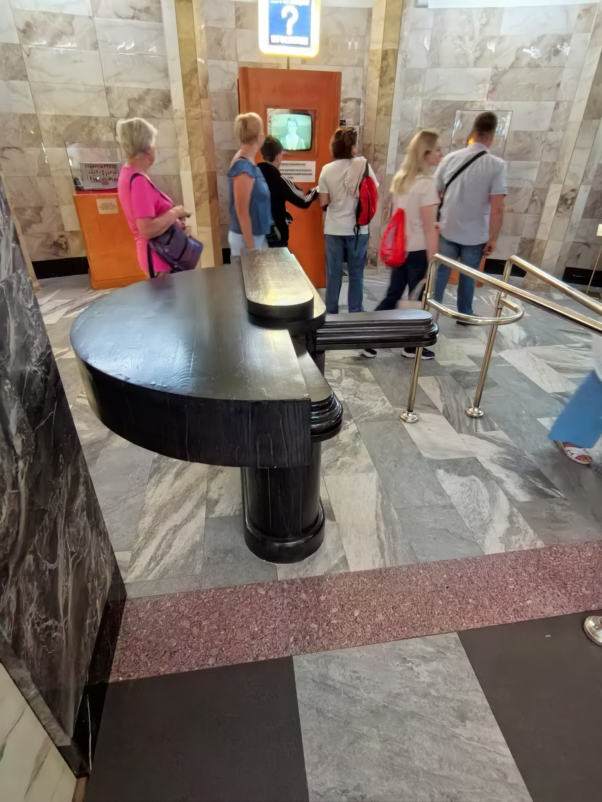 Ручной турникет. Как я понимаю был ещё до внедрения автоматических страшных турникетов, которые вы все боялись в детстве (правда они ещё были деревянные, не из металла).