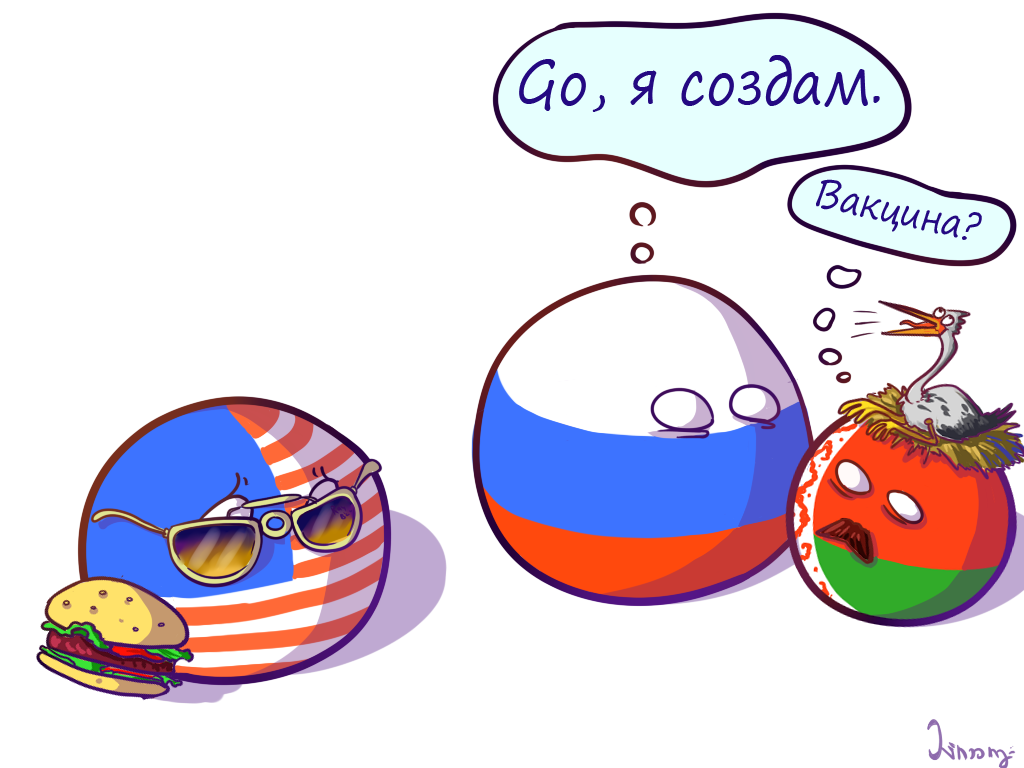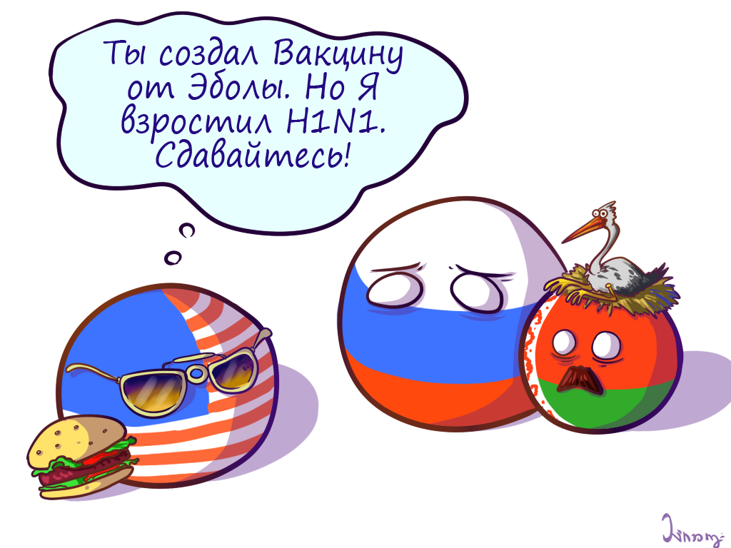 FlaiArt Вакцина ( Countruballs Мини комикс) 9 лет назад [моё] Россия США Countryballs H1n1 Рисунок Вакцина