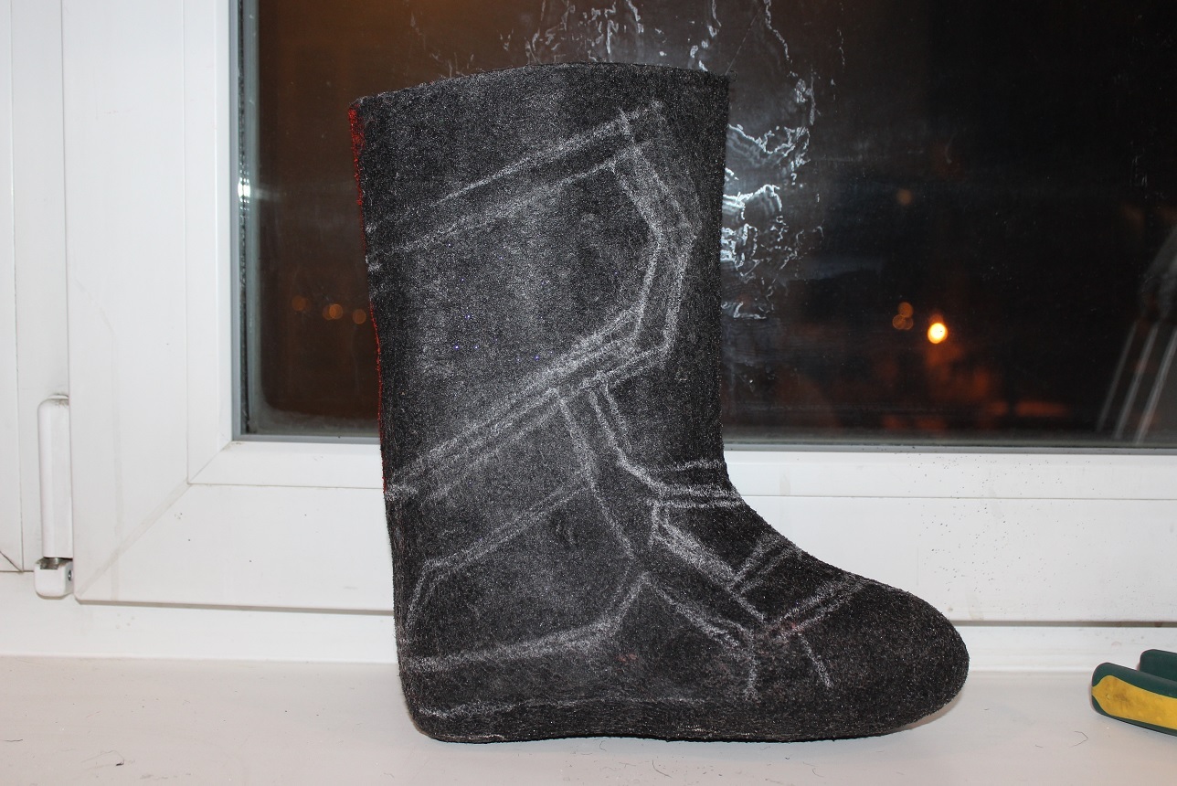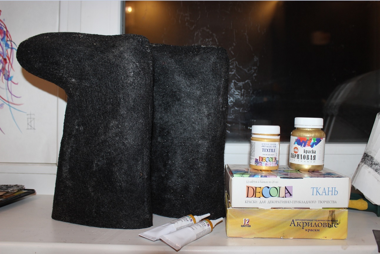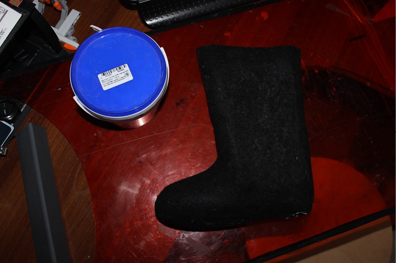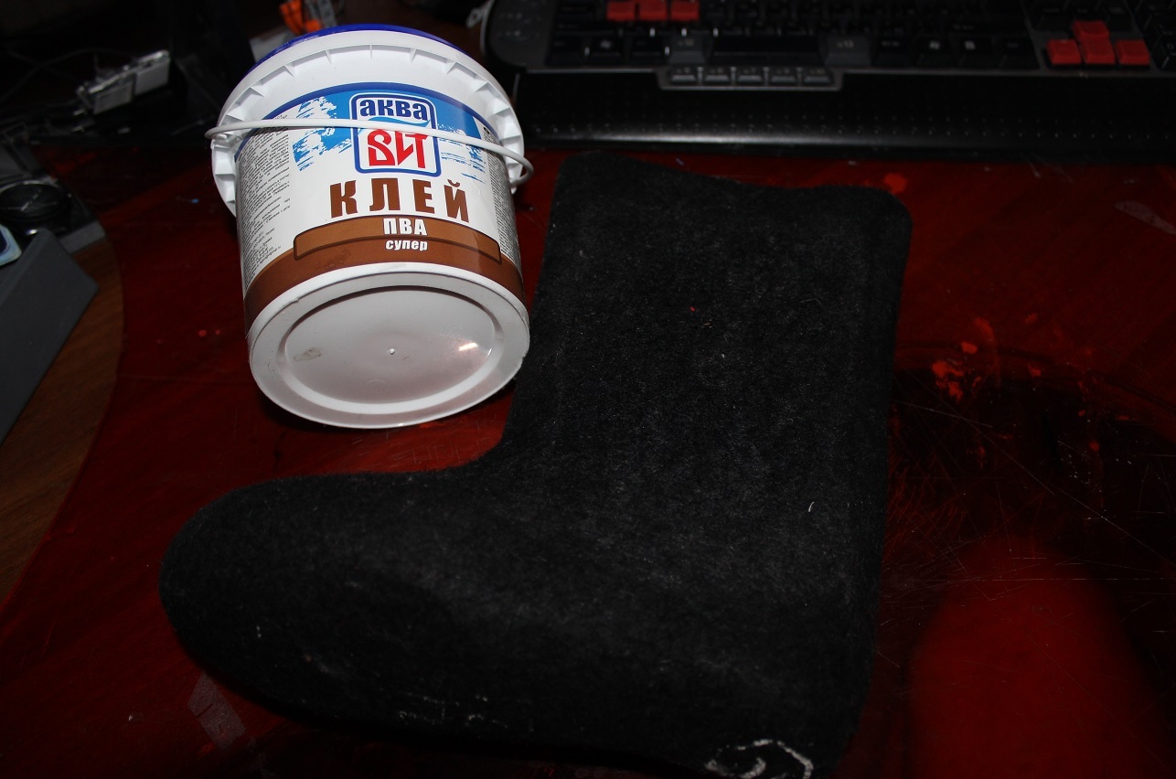 Обильно смазал клеем оба валенка и оставил на подоконнике, в ожидании просушки