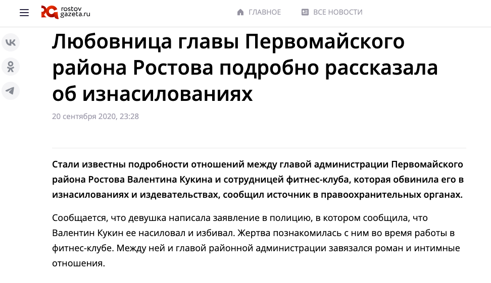 Женщина подала заявление в полицию, и информация об этом оперативно просочилась в СМИ. «Ростовская газета» опубликовала подробности обвинений со ссылкой на источник в правоохранительных органах, а «Блокнот Ростов» сообщал, что дело пытались замять до проведения выборов. Источники утверждали, что дело не ушло дальше внутреннего документооборота.