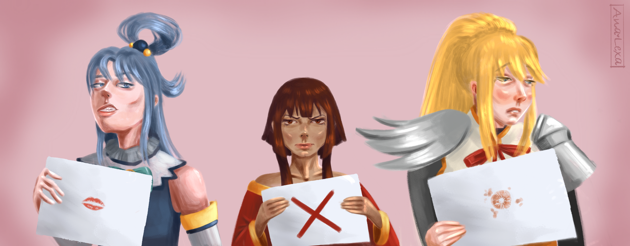 YourShining Валентинов день 3 дня назад Опаздала немного Захотелось повторить мем, увиденный ранее, и заодно проверить свои силы. Курс явно идёт на пользу. [моё] Procreate Художник-самоучка Konosuba Валентинка 1 Ещё 0