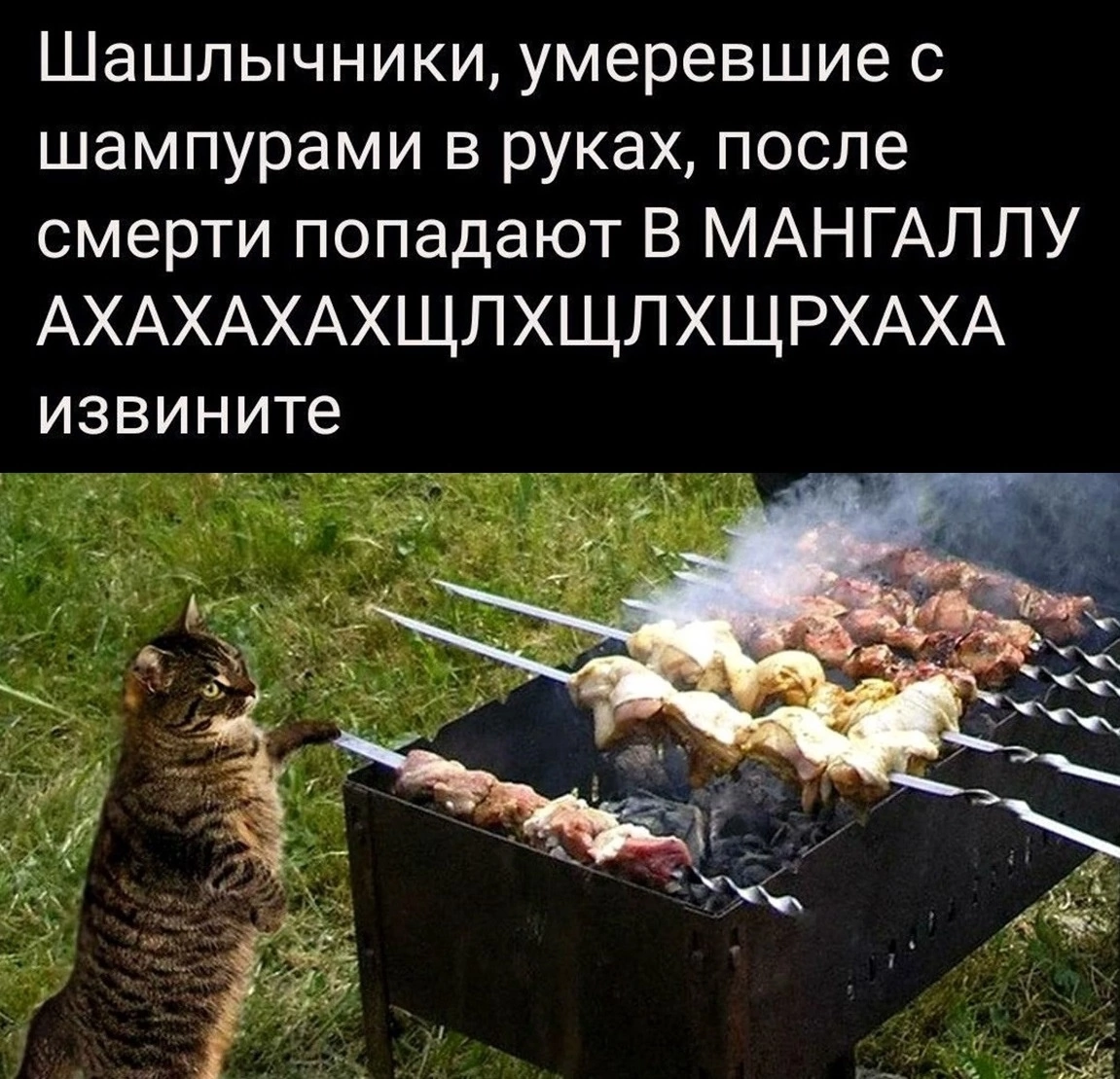 projekt0017 5 месяцев назад Серия Безбожник Вальхалла Религия Картинка с текстом Вальхалла Странный юмор Кот Игра слов Шашлычник Шампуры Смерть Мангал 3 1 1 Ещё 0