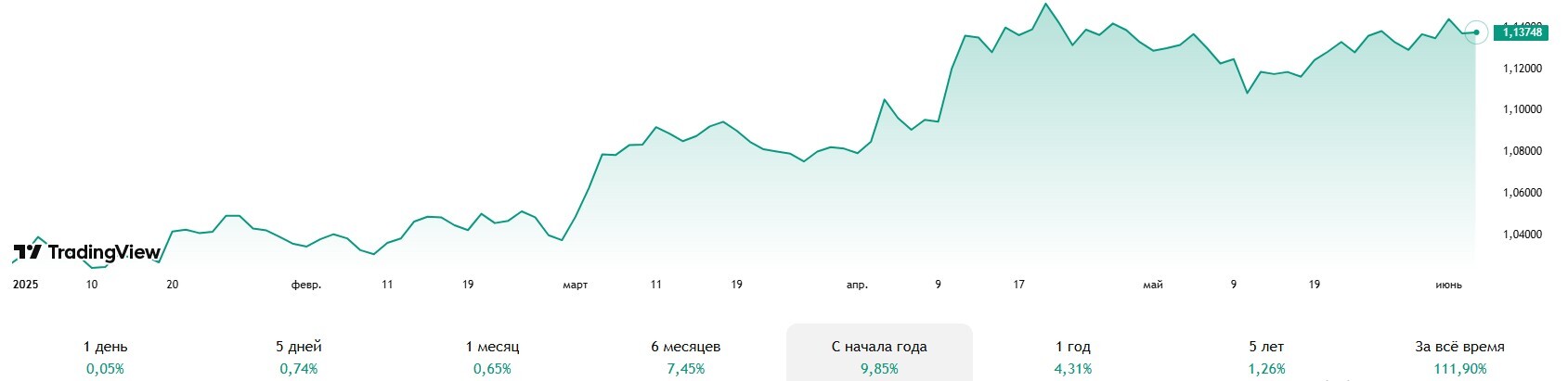 И, кстати, евро уже вырос почти на 10% по отношению к доллару в этом году.