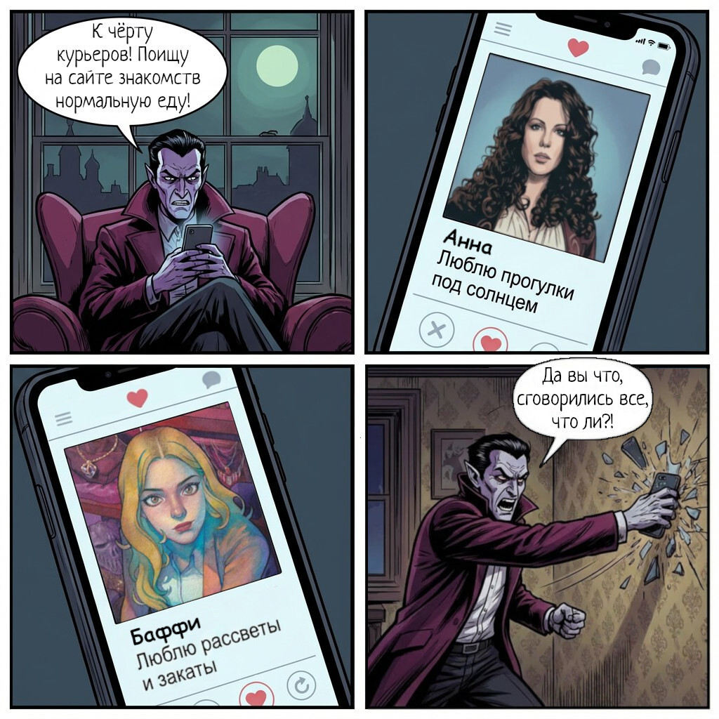 Продолжение коротких комиксов про вампира начало тут: Особенности питания вампиров