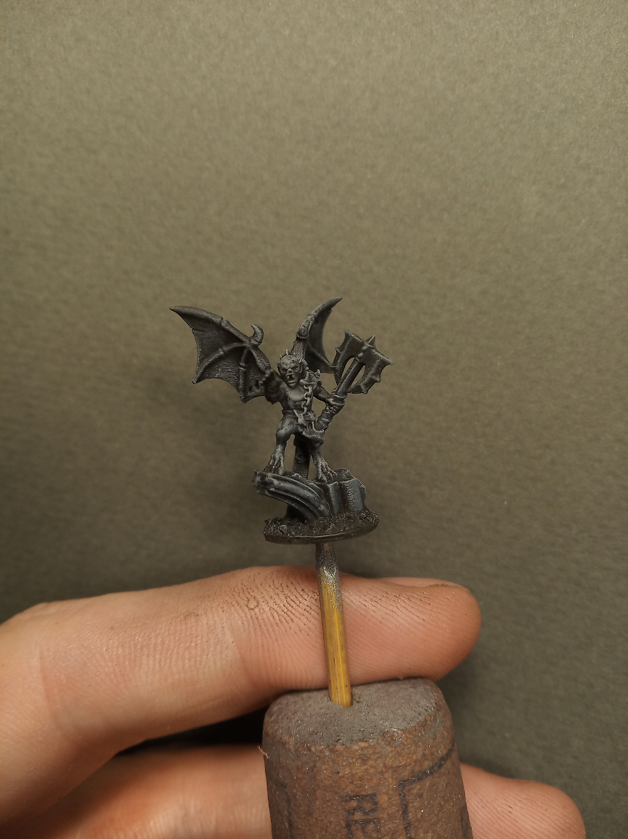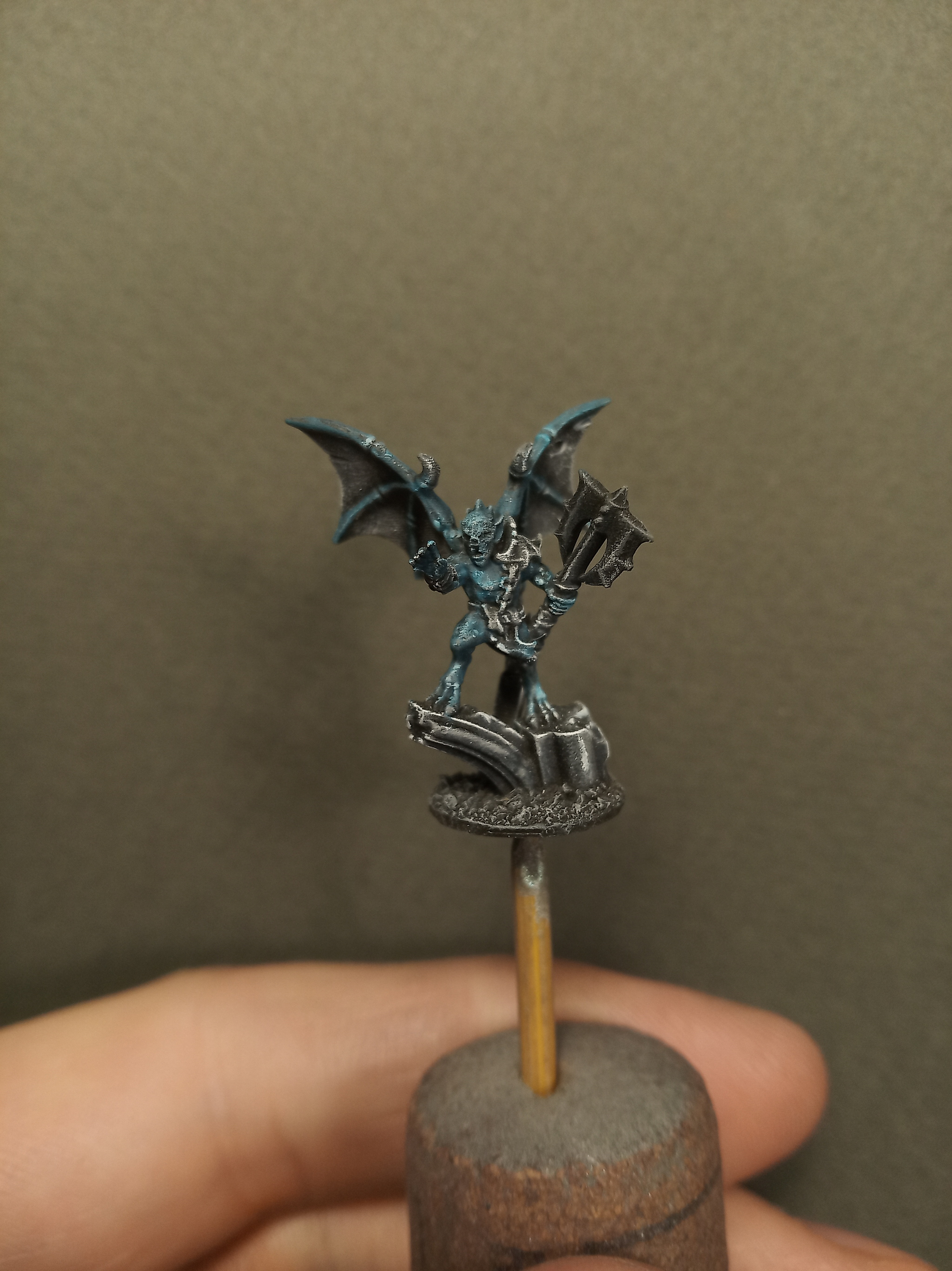 Загрунтовал, задул черным и сделал в несколько оттенков от черного к белому "прешейд" драйбрашем, дабы потом просто наглазировать цвета.