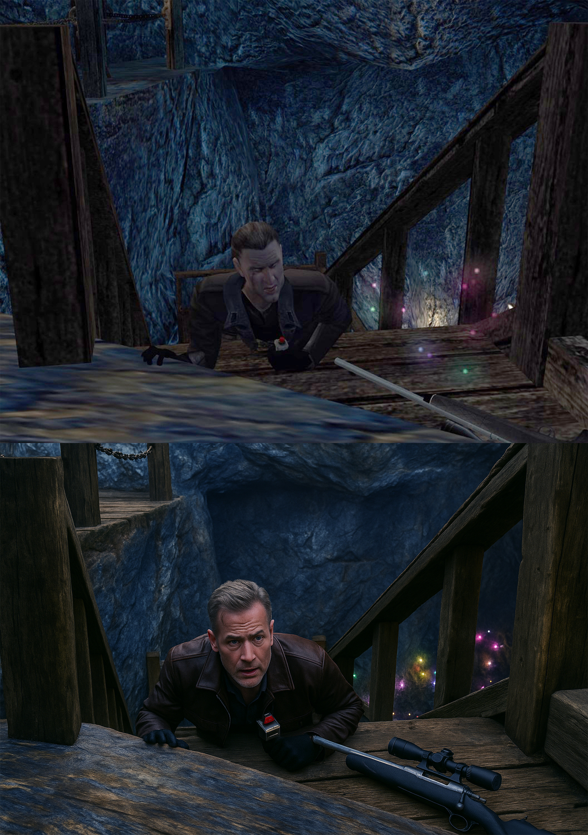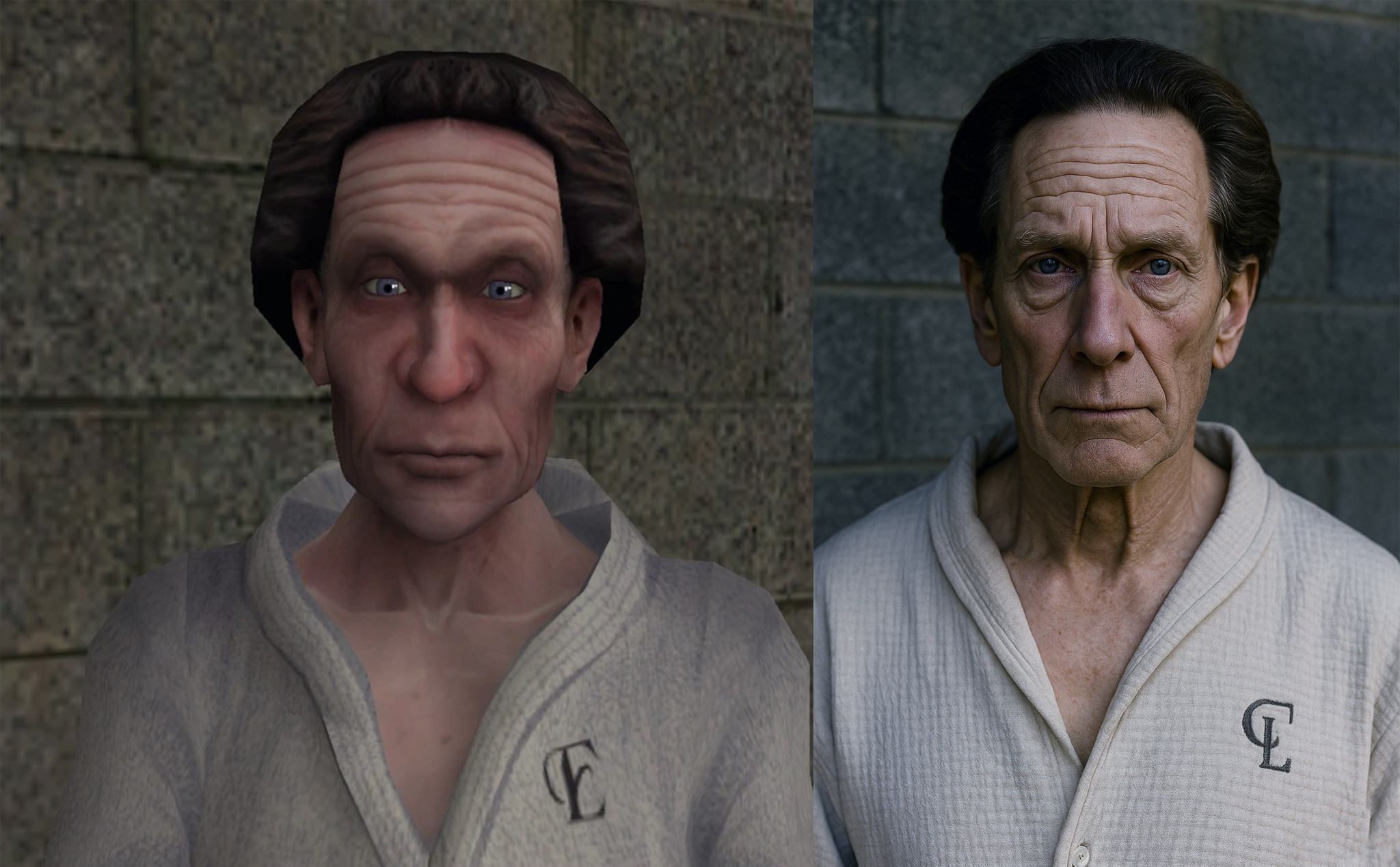 тут нейронка изрядно тупила из-за синего цвета кожи Эша. Пришлось написать что это Генри, ну пусть так.
