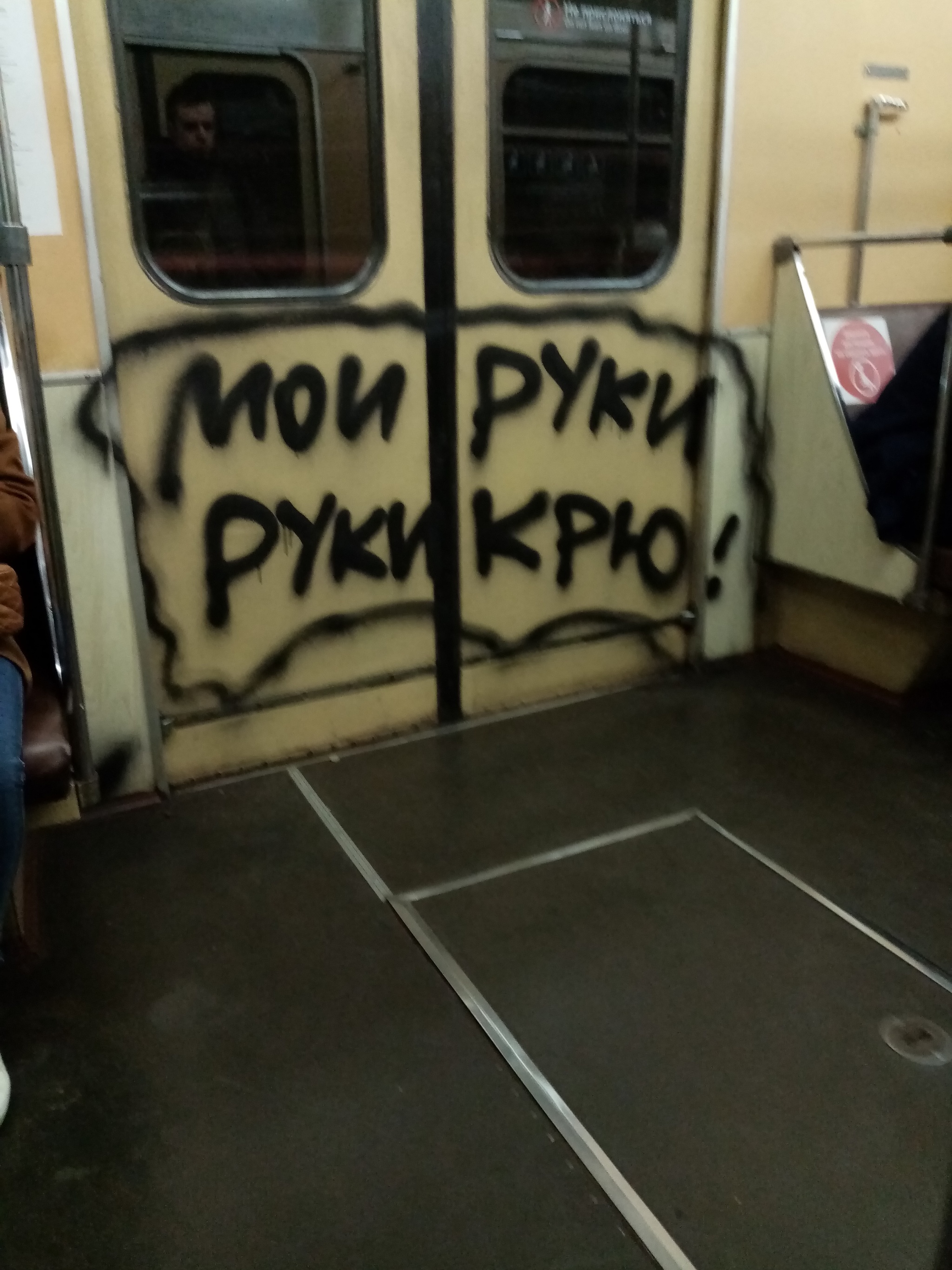 Trishmerrygold Вандалы в московском метро 5 лет назад . Сегодня на салатовый ветке московского метро в вагоне увидела вот такую дичь. У меня тоже может руки крюки, но мне не приходит в голову портить двери вагонов. [моё] Реальная история из жизни Московское метро Вандализм Ещё 0