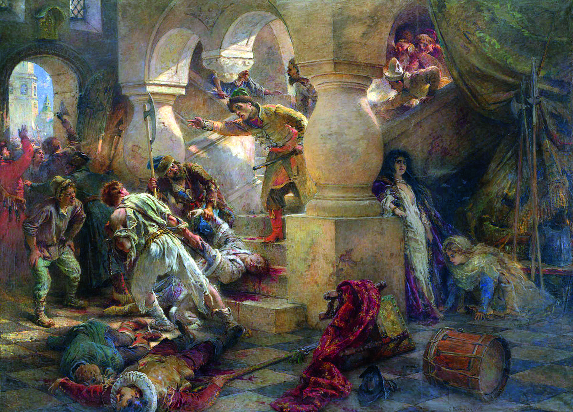 17 мая на рассвете по Москве разнесся колокольный звон. Шуйский в окружении верных ему бояр и в сопровождении около 200 вооружённых человек въехал на Красную площадь. Князь кричал, что польская знать пытается убить царя, и требовал, чтобы горожане поднялись в его защиту. И без того пропитанные ненавистью к иноземцам москвичи кинулись бить поляков. В ходе резни было убито около 500 человек. Шуйский же со своим отрядом отправился в покои царя...