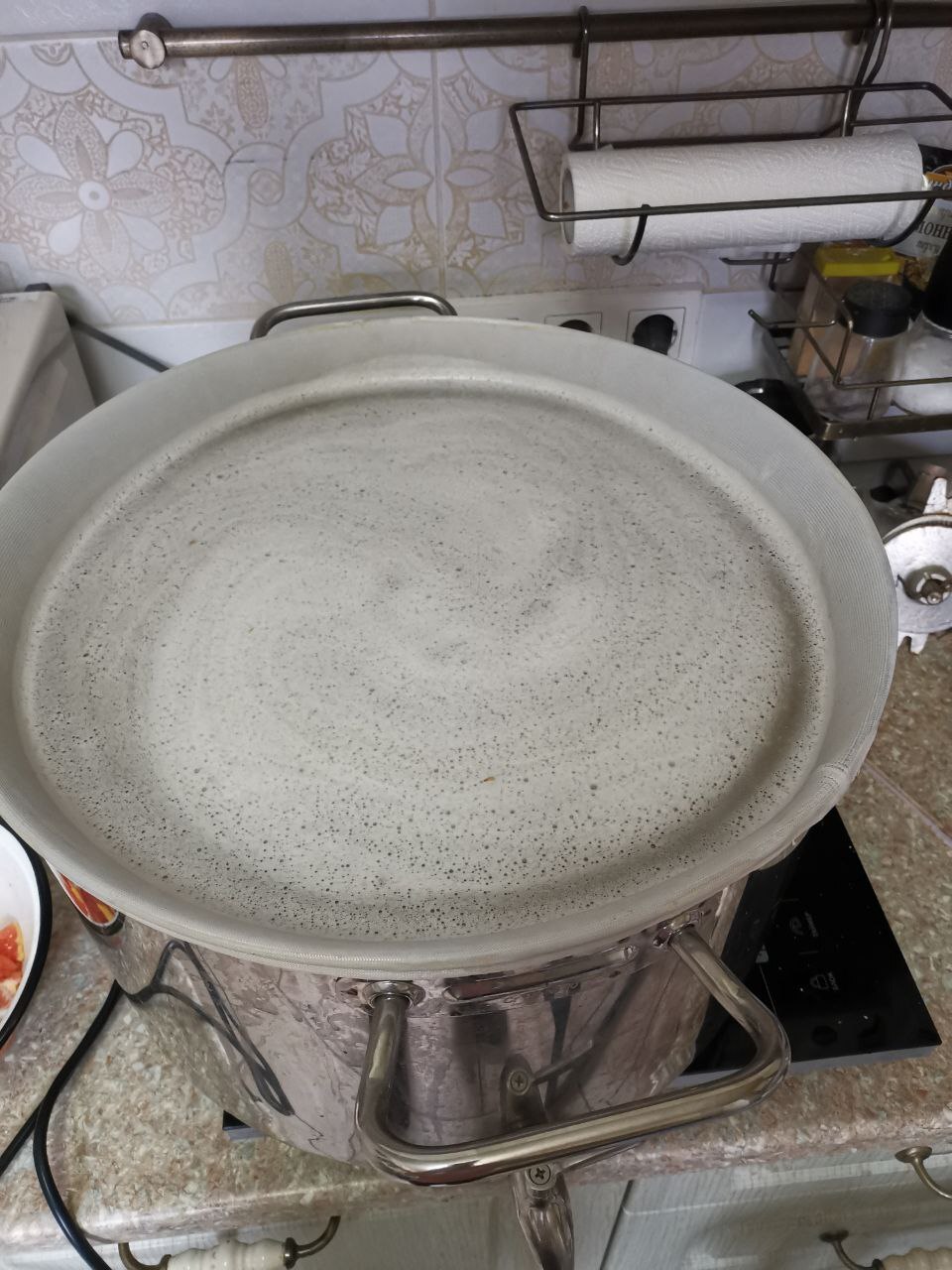 Как только добиваемся температуры сусла в 78°С, прекращаем лить кипяток, все снова тщательно перемешиваем, закутываем в полотенца и оставляем на 10 минут.