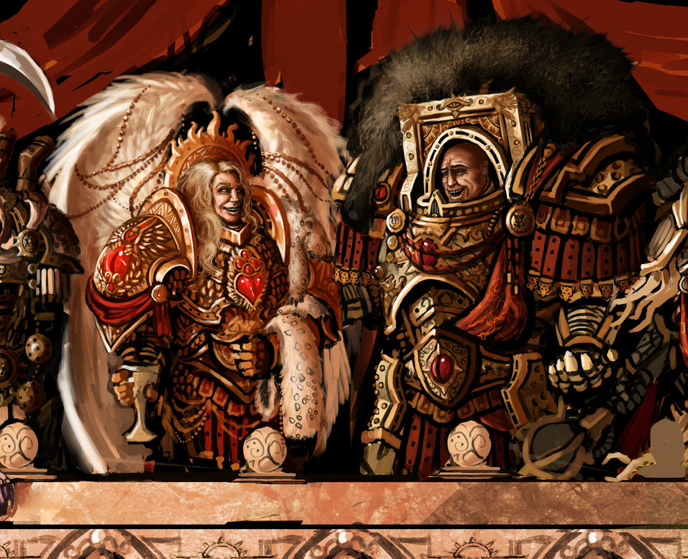 Вообще, после триумфа на Улланоре, многие считали, что именно Саня должен стать воителем, но тут даже мне понятно в чём прикол, и почему был назначен именно Егорка. Сангвиний не искал славы и власти, а Хорус плотно на них сидел, как на наркоте. Проще было дать ему ещё дозу, чем столкнуться с потенциальным недовольством.