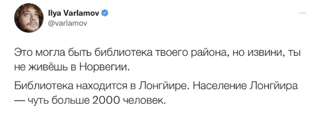 "Это могла бы быть библиотека твоего района, но извини ты живешь не в Норвегии"