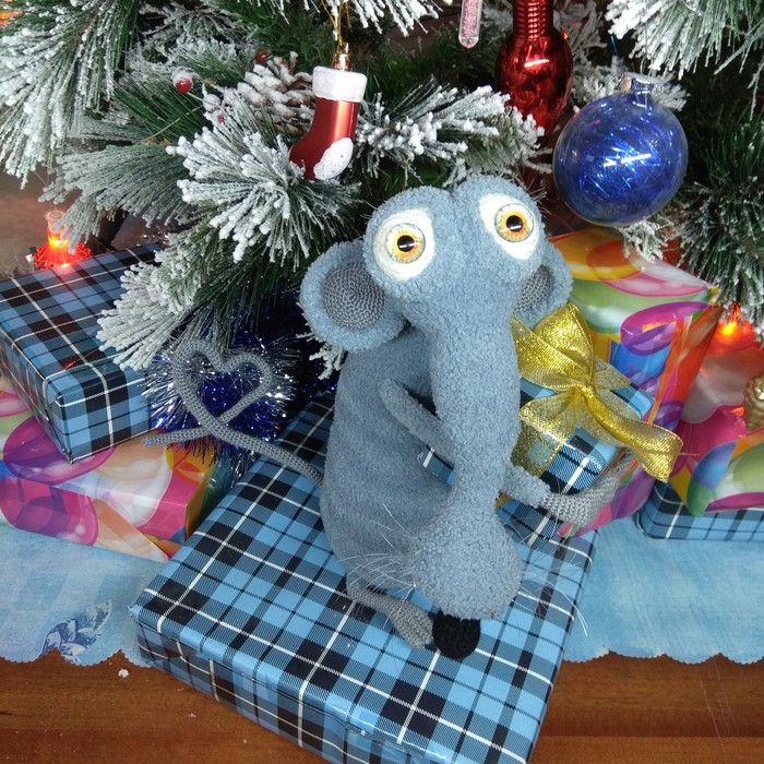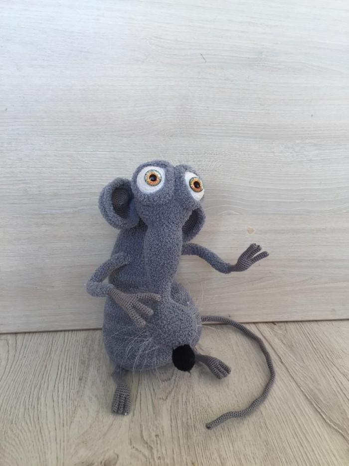 Всем пятничный привет. Крысиная лихорадка в самом разгаре и я не осталась в стороне. Крыса Варвара связана по описанию С. Перцевой из моей любимой Alize softy и неопознаный акрил, использовались крючки 1.75, 2.0 и 2.5, леска для усов и ресниц.