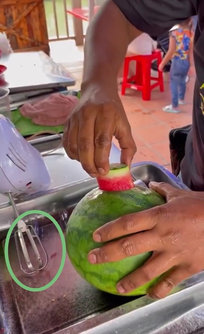 В прошлом году захотела арбузный фреш, когда гуляла в ТЦ Планета (Уфа). Купила в ресторане там же. Какого было мое удивление, когда фреш оказался таким же по консистенции как и на видео - все перемолото с семечками, причем отвратительно. Странно, что кожуру пожалели