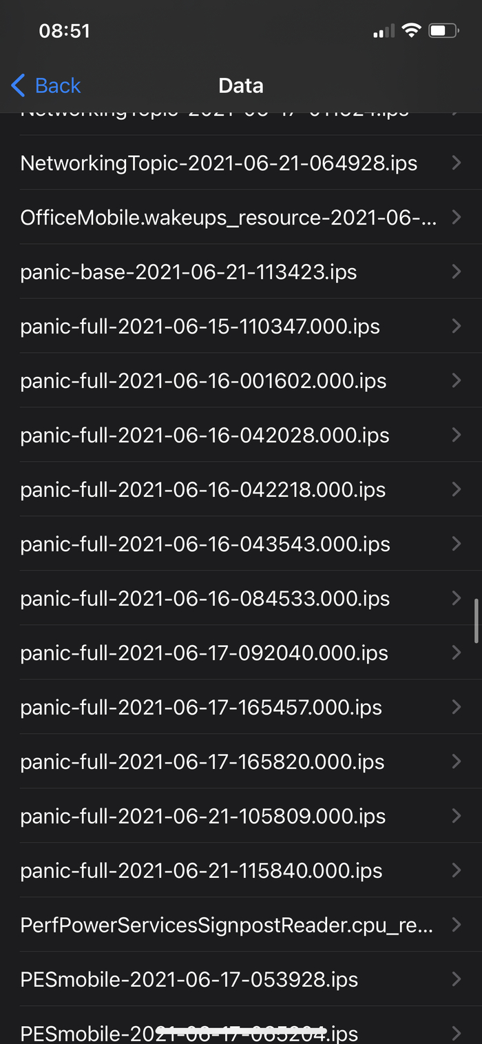 «Настройки» -> «Конфиденциальность» -> «Аналитика и улучшения» -> «Данные аналитики» -> прокрутите страницу вниз до файлов, начинающихся с «panic-full...», и нажмите на самый последний по дате файл.
