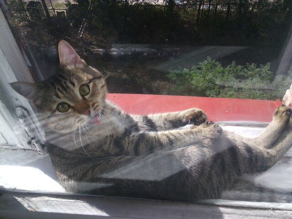 1094 Ceramist -Ваш кот застрял. 9 лет назад -Он не застрял, ему так удобно. Бонус в комментариях. [моё] Кот Окно Комфорт Усатый-полосатый