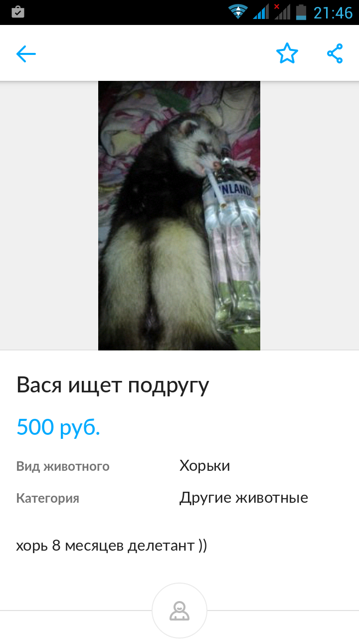 351 gurza92 Вася ищет подругу 10 лет назад Главное правильно себя подать Авито Объявление Хорек Дилетант Самара