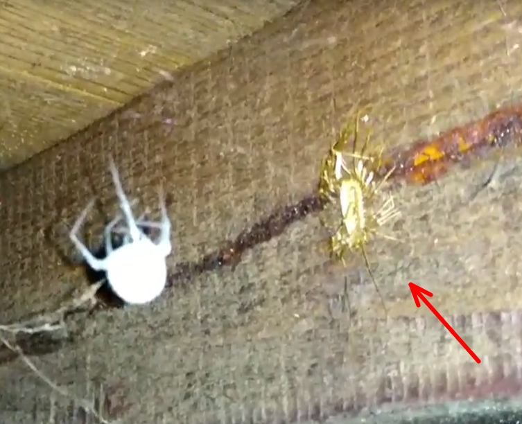 Тогда сомнений почти не осталось, что это пауки. Вот только у меня в голове не укладывалось как плесень могла убить пауков. Я помню из курса школьной биологии, что есть какой-то вид плесени, который "порабощает" муравьев и когда они дойдут до благоприятного места, грибок их убивает и начинает расти, но не думал, что увижу это в живую. И не понимал, почему плесень убила только пауков, а рядом умершую сороконожку она не "окучила".