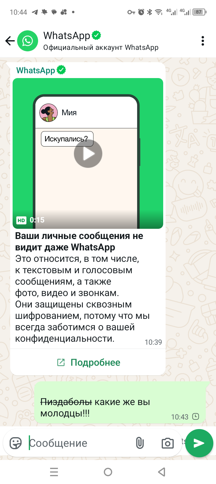 Koksenko Ватсап, между прочим, молодцы! 8 месяцев назад [моё] WhatsApp Картинка с текстом Длиннопост Ещё 0