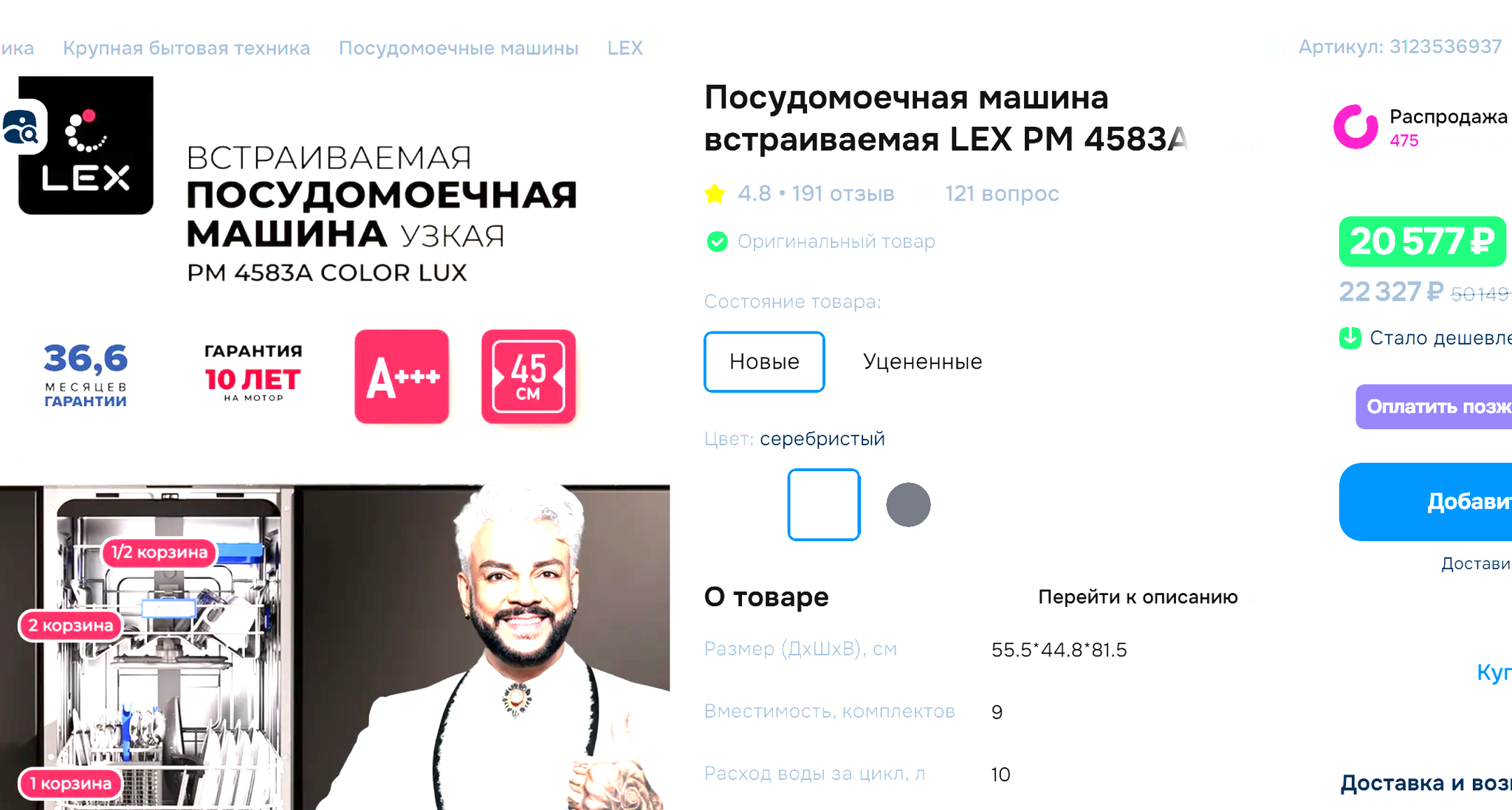 ПМ накинула к цене 1700 и стала стоить 22290. Филя продолжает улыбаться. Там появилась вторая, с индексом В. Но они практически одинаковые, разница в 1 комплекте посуды, упихиваемом внутрь. По цене тоже один хуй - то одна дороже, то другая.