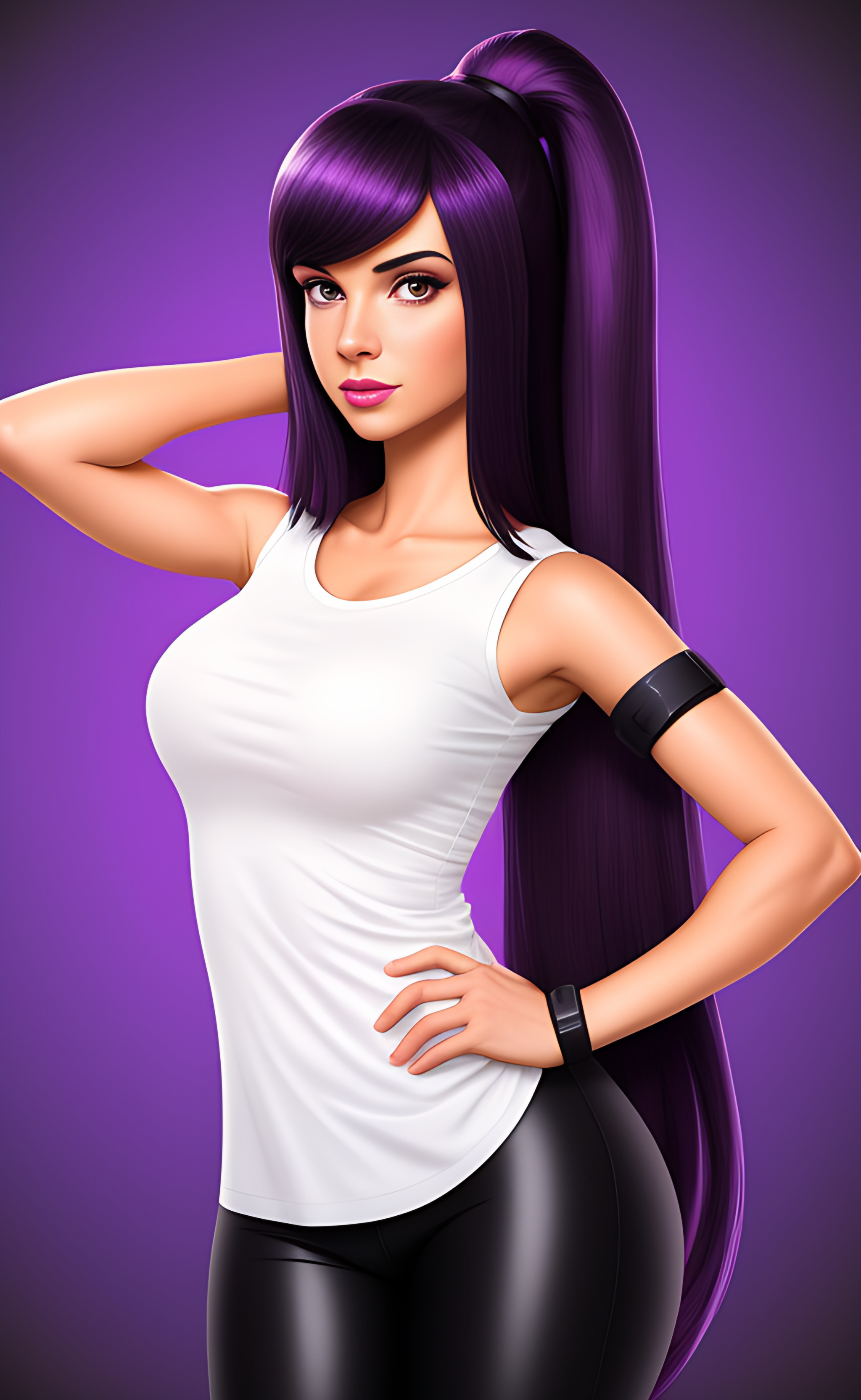 Лила Туранга из Футурамы. Да, я знаю, что у нее один глаз. Но, во-первых, попробуй объяснить это нейросетке, а во-вторых, в Футураме была серия, где у Лилы появились оба глаза, так что в определенной мере все канонично.
