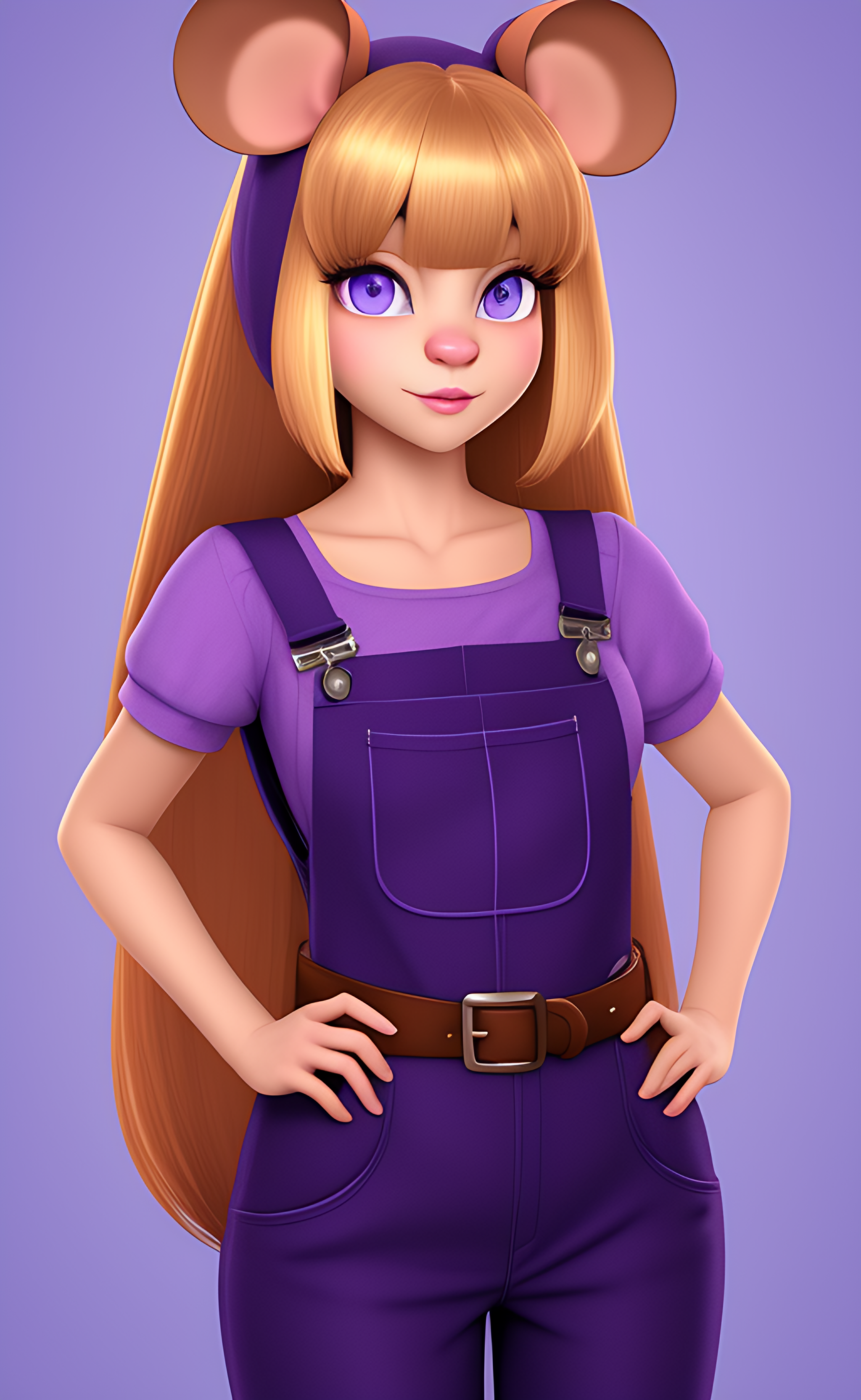 По многочисленным просьбам и на ваш суд - Гайка! Постарался сделать максимально симпатично, чтобы и мышиные черты угадывались, и в откровенную фуррятину не уходило. Но, как я уже говорил, нейросеть очень тяжко понимает нечеловеческих персонажей. Наверняка кто-то из вас сможет сделать лучше, буду только рад.