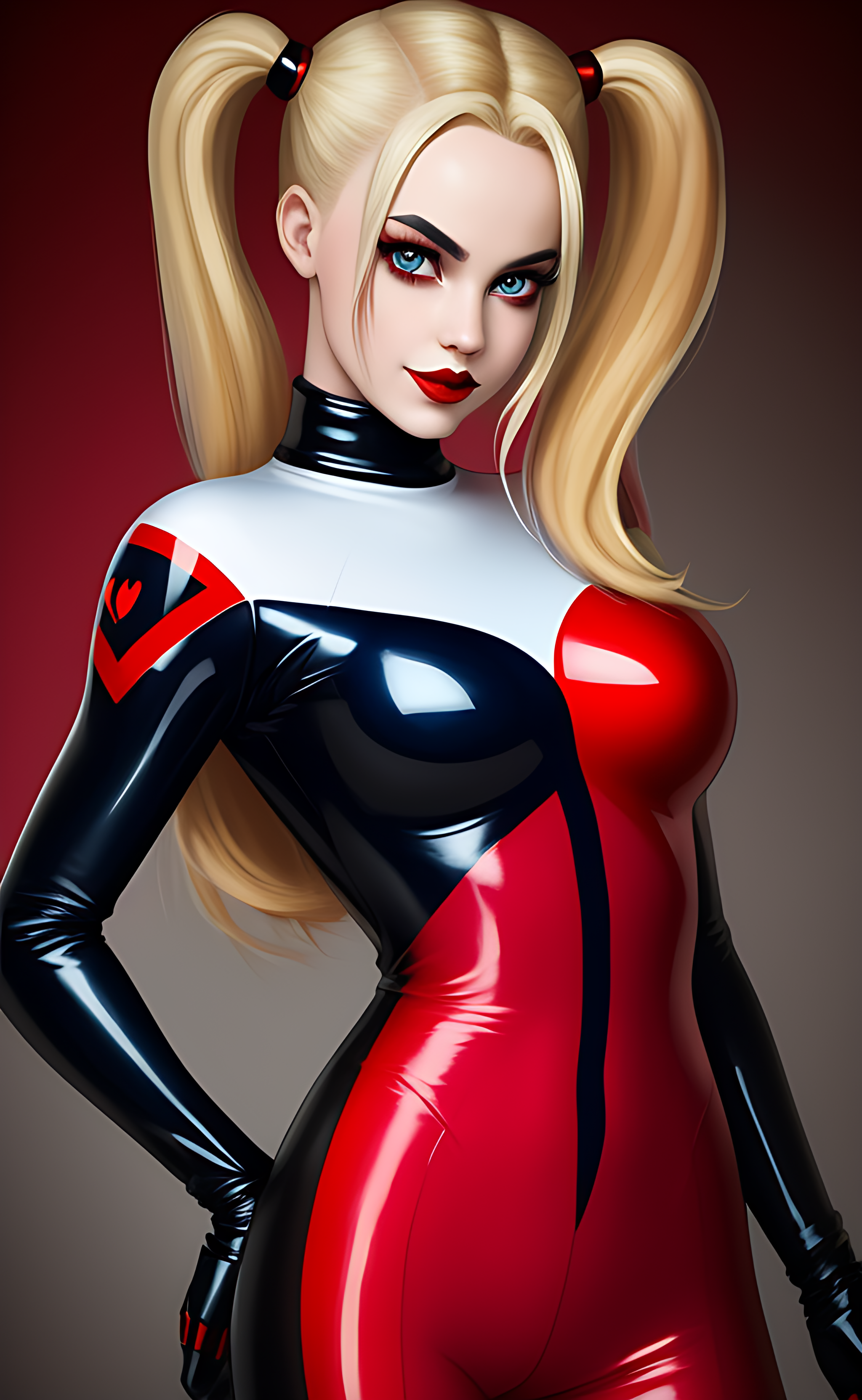 Харли Квинн. Основой образа стала ее самая первая версия, из Бэтмена 1992 года, но добавились и другие, не менее привлекательные.
