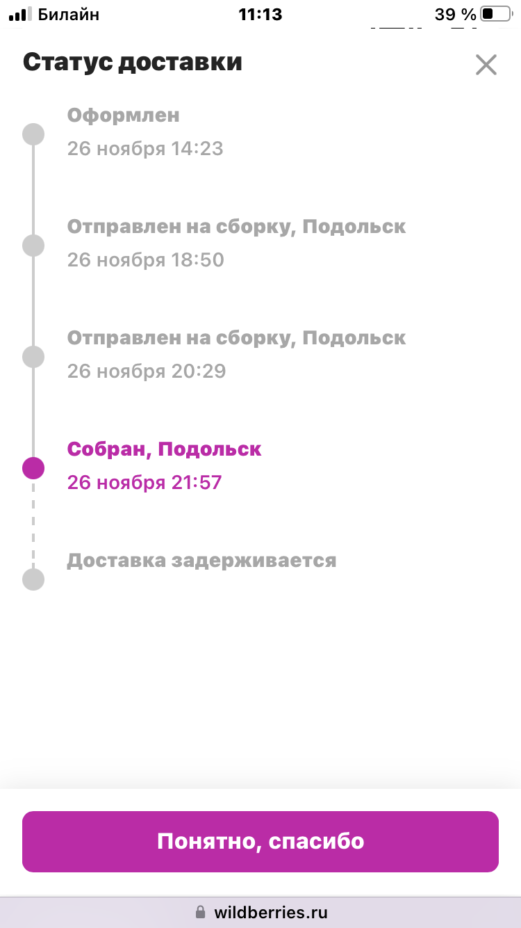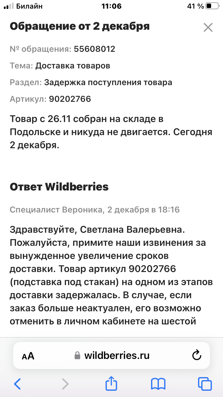 Заказала на Новый год коллегам в виде сувенира подстаканники. Все пришли, кроме одного. Он завис на одном из складов (или рц?). Увидела в списке покупок что товар отказан продавцом. У меня он просто висит «товар задерживается» с 26 ноября.