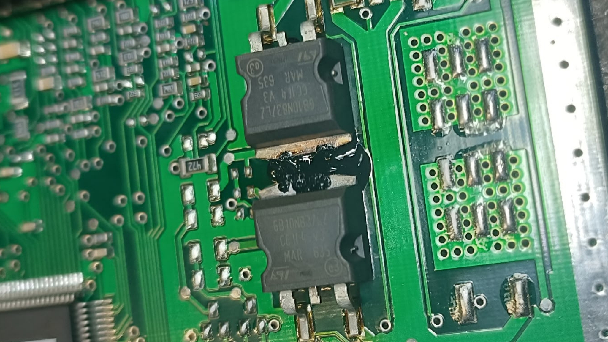 Хозяин автомобиля, пытаясь самостоятельно отремонтировать автомобиль, заменил свечи, высоковольтные провода и катушку зажигания, но это не помогло — двигатель так же работал на двух цилиндрах, что неудивительно, ведь ключ, управляющий половиной катушки сдох. К сожалению, вышедший из строя ключ не просто сдох, а остался в открытом состоянии, из-за чего новая катушка (вернее её половина, отвечающая за работу 1 и 4 цилиндров) осталась под напряжением навсегда и благополучно грелась.