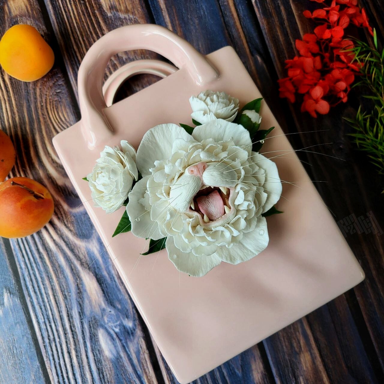 Совсем недавно мне попался подходящий вариант вазы, но требовался дополнительный запёк, тд декор был полукруглым (по поверхности кружки), а требовался прямой задник (для розовой вазы). И тут, видимо, давний слой лака (под воздействием температуры) пожелтел! Всё здорово, глина не потеряла свойств и по-прежнему прочная и гибкая, но кот на вид стал "винтажным", а его уже покупатель ждет...договорились, что переделаю.