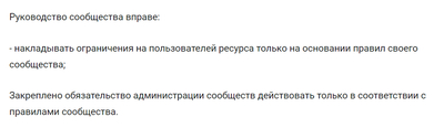 - накладывать ограничения на пользователей ресурса только на основании правил своего сообщества;