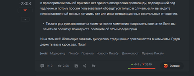 — Внесены в правила практики по управлению сообществами, пропаганде нетрадиционных сексуальных отношений и редактирование опечаток;