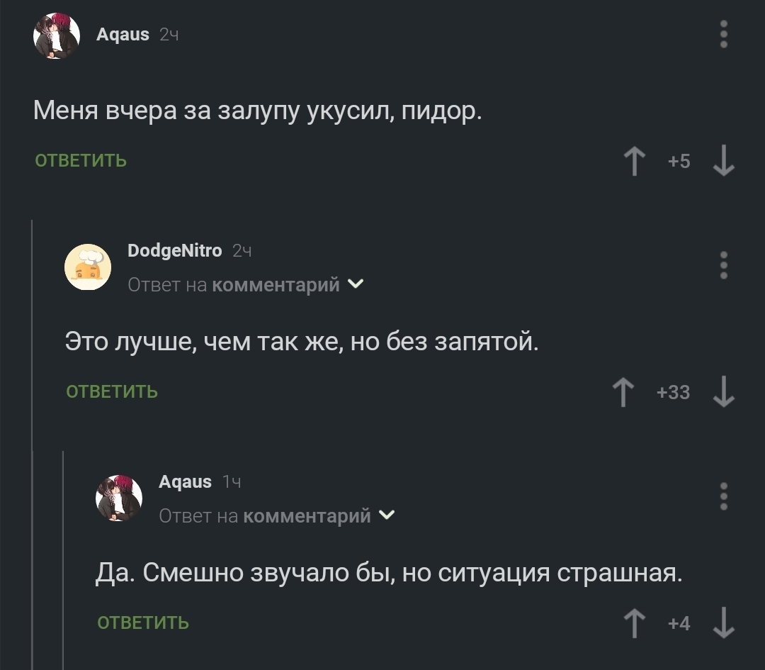 334 Nosf3ratukzn Важность знаков препинания 8 месяцев назад @Aqaus, @DodgeNitro вы в телевизоре!#comment_355316914 Комментарии на Пикабу Комментарии Запятая Паук 18 3 1 Ещё 0