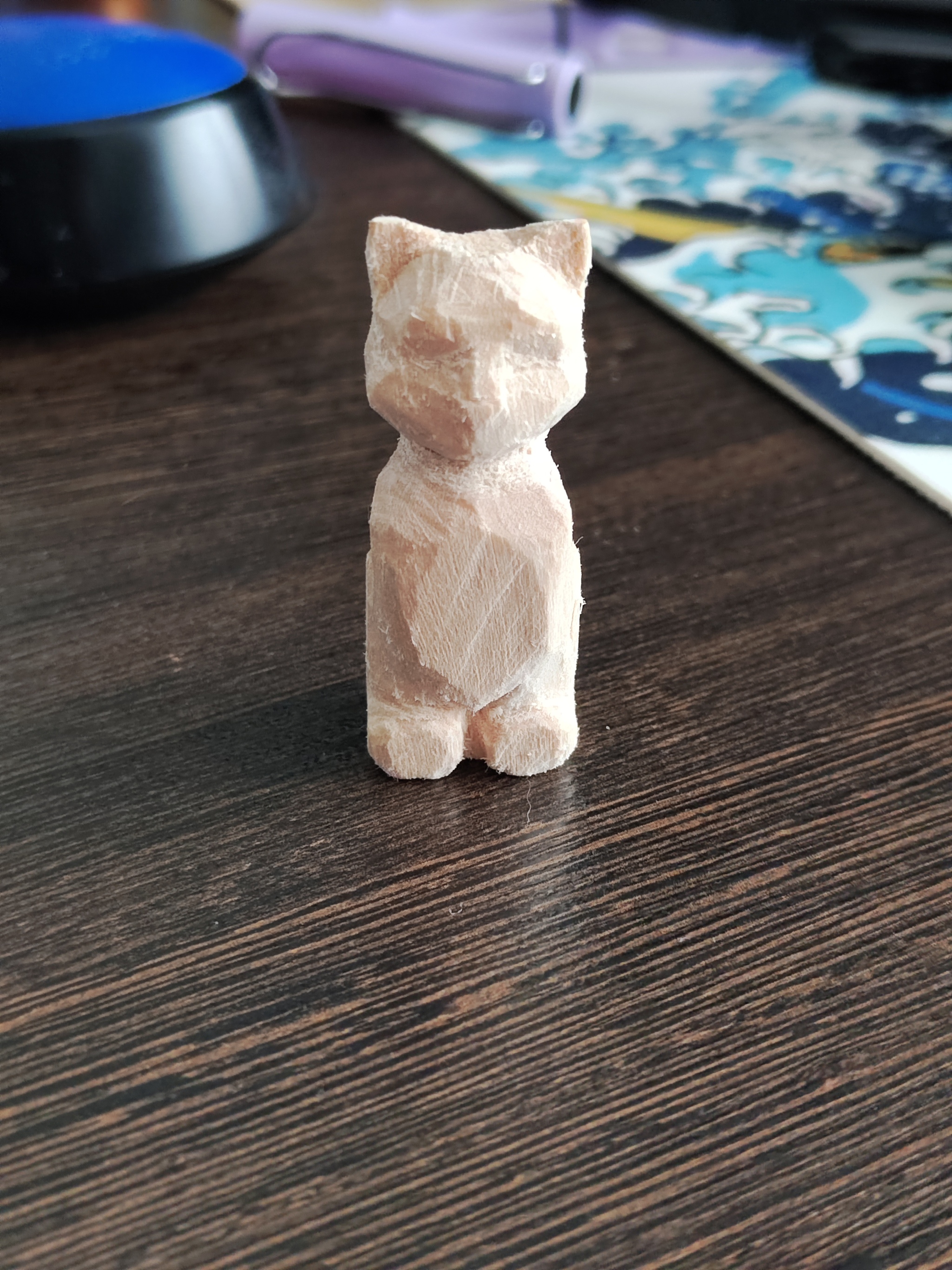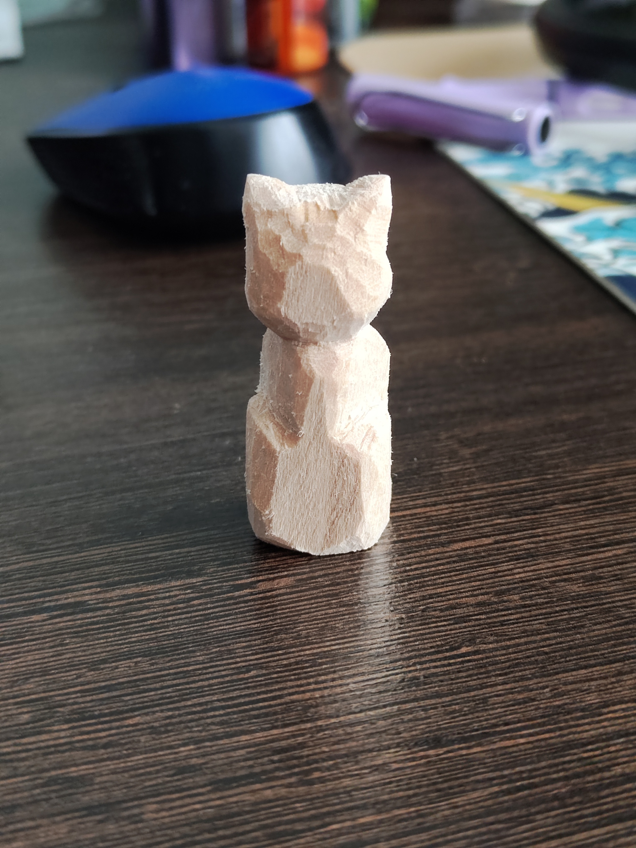 Интересно наблюдать за эволюцией моих деревянных котов, столько уже разных было, а все еще трансформируются понемногу. Может быть, итог эволюции, это форма шара... котошара🤔