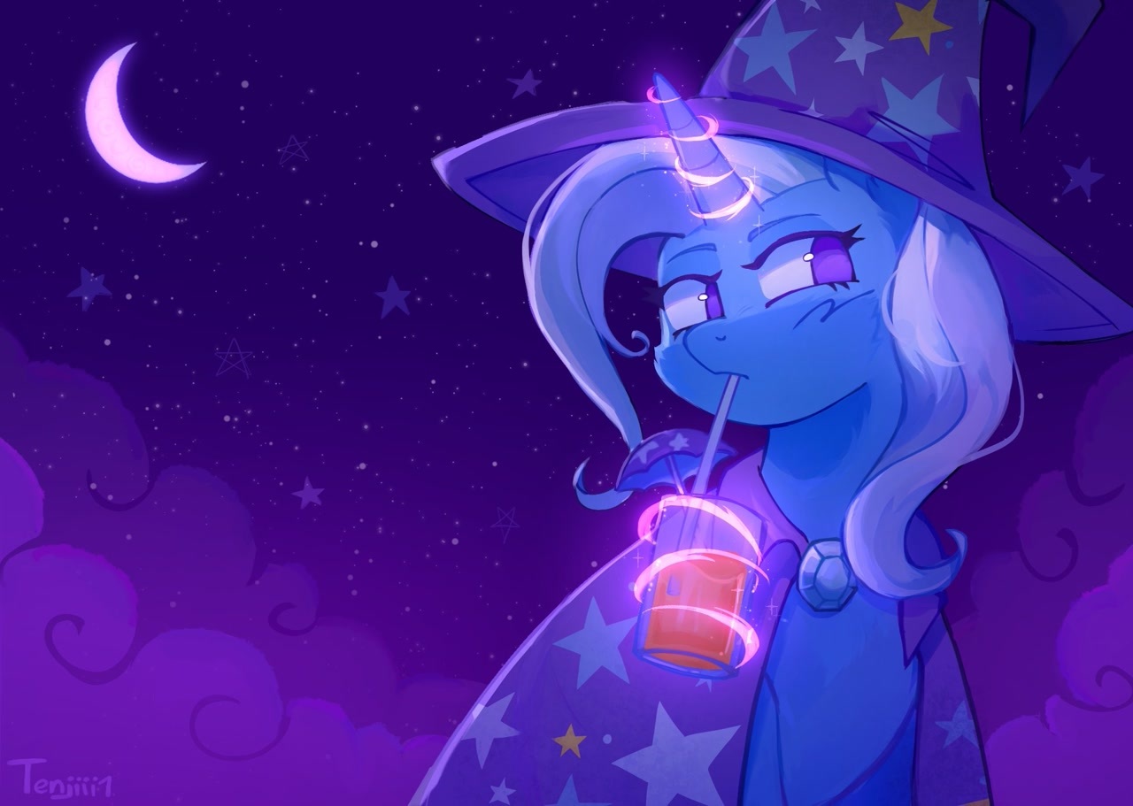 18 PUPSIKLoLPro2011 My Little Pony Важный Трикси пить магический коктель 4 месяца назад Трикси пить довольный сидеть под луна и звезды, рог светить красивый, шляпа на голова как надо. Я люблю этот пони, она делать магия даже когда пить, не нужен копыта просто аура держать стакан, это настоящий волшебний! - Художник молодец сделал 😍👍 Начинающий художник Демон My Little Pony Trixie Ещё 0