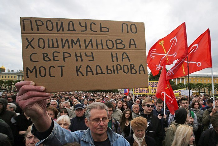 2542 sng2014 Вчера, на митинге против переименования безымянного моста в Питере.) 9 лет назад Фото Мост Рамзан Кадыров Санкт-Петербург Транспарант Политика