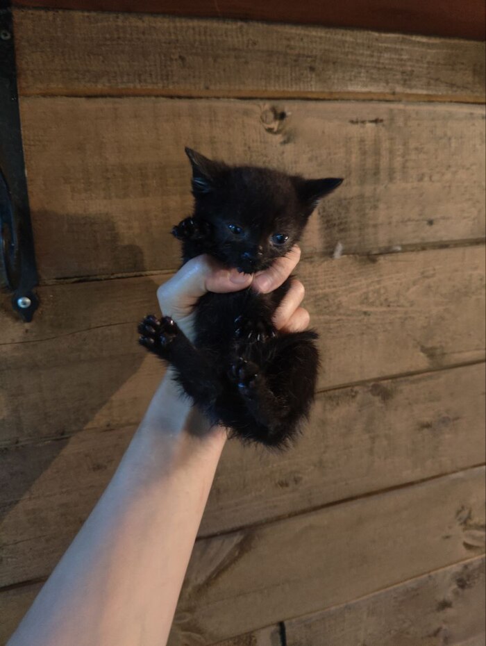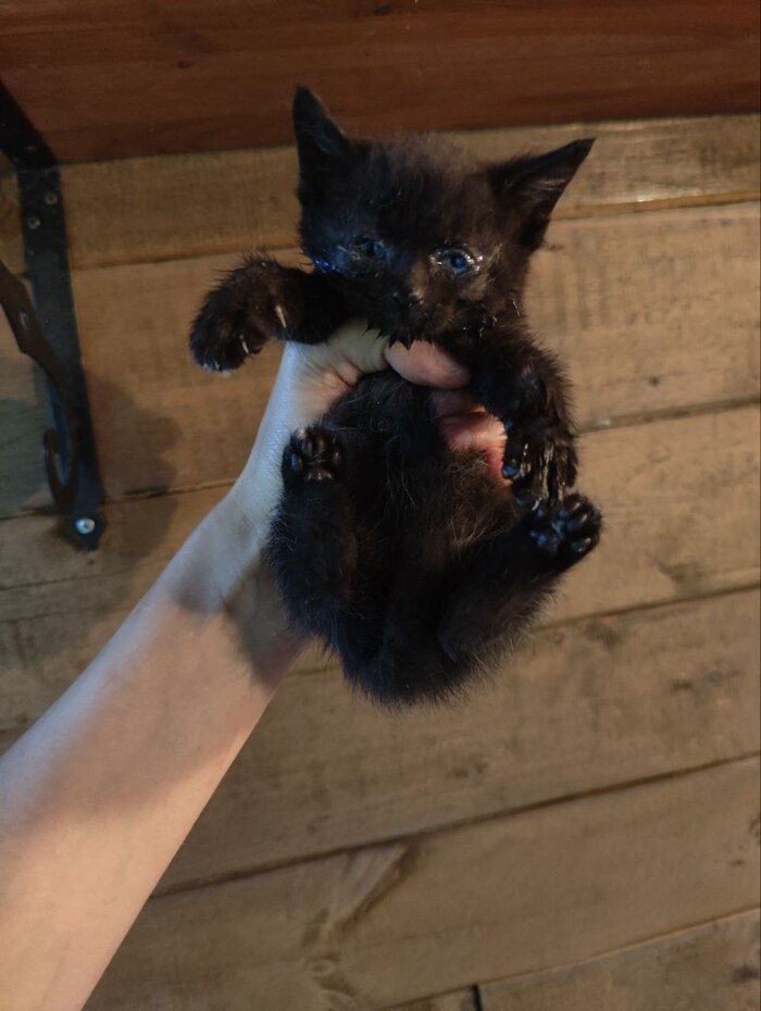 Котят я ловила больше часа, надышалась пылью, рассмотрела завалы из старых и интересных вещей и много думала об отсутствии пожарной безопасности на чердаке, заваленном старыми и очень сухими березовыми вениками. В конце концов удалось выловить 4 котенка к тем двум, которые были пойманы три дня назад. Котята были очень голодные, с залипшими глазами, одна девочка была самой слабой и сразу же после еды уснула у меня на руках.