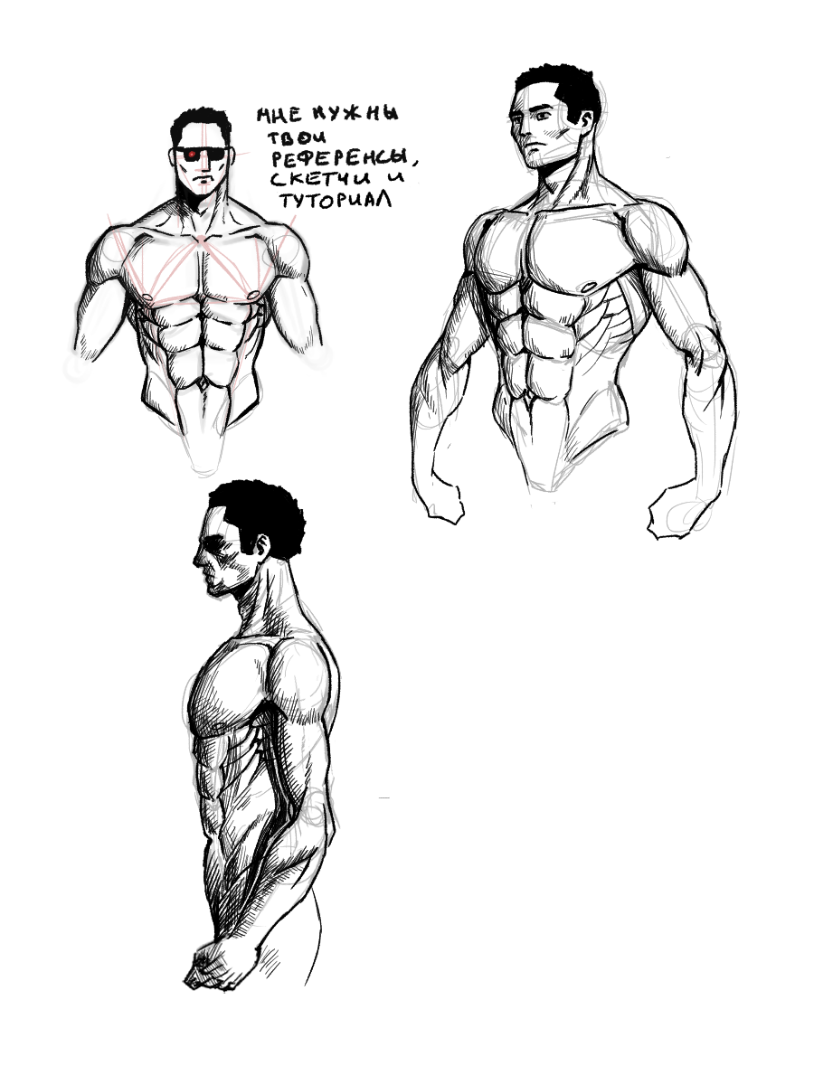 Вчера я тренировался рисовать мужской торс. Вот, что получилось