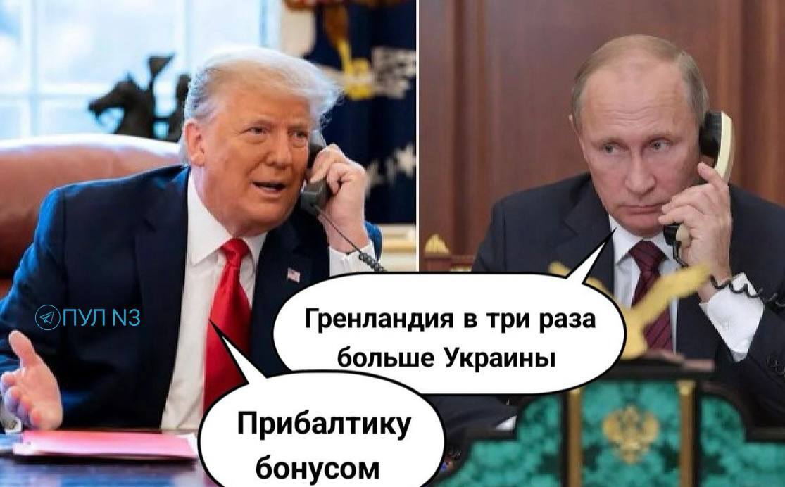 2242 BorschRusso Вчерашние переговоры 6 месяцев назад Fake News Юмор Политика Мемы Россия Переговоры Дональд Трамп США Владимир Путин Гренландия Прибалтика Картинка с текстом 100 14 4 2 2 Ещё 0