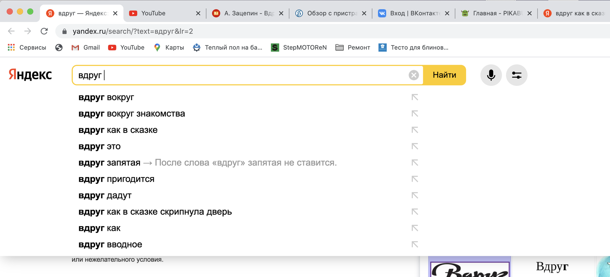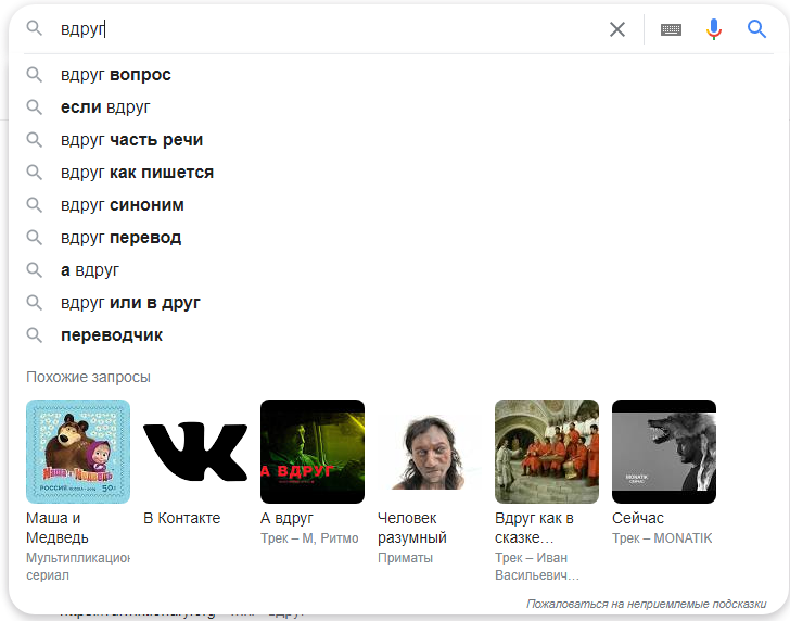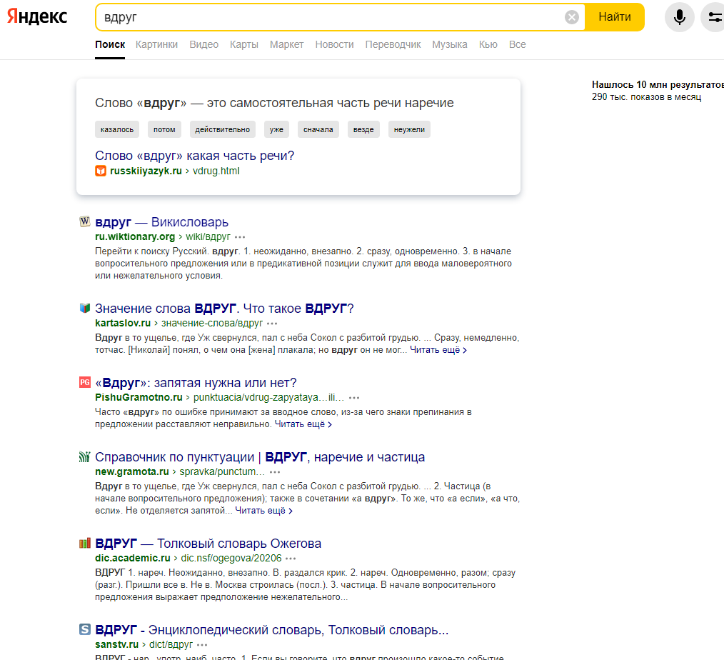 А знаете ли вы, какой у меня результат выдаст любая поисковая система, если ввести в нее слово "вдруг"?