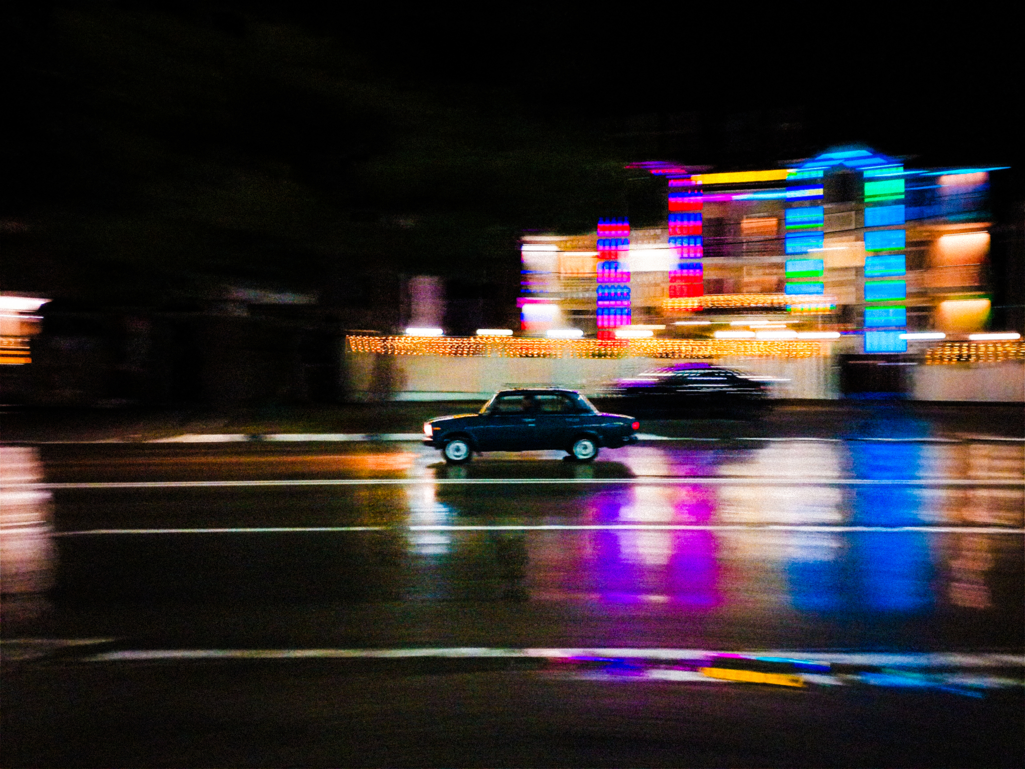 С таким фоном было грех машины не поснимать. Забавно, что телефон автоматически выставил ISO до 6125, чтобы выдержка была покороче. За многое эту матрицу можно ругать, но на высокой светочувствительности не сильно шумит, это радует.